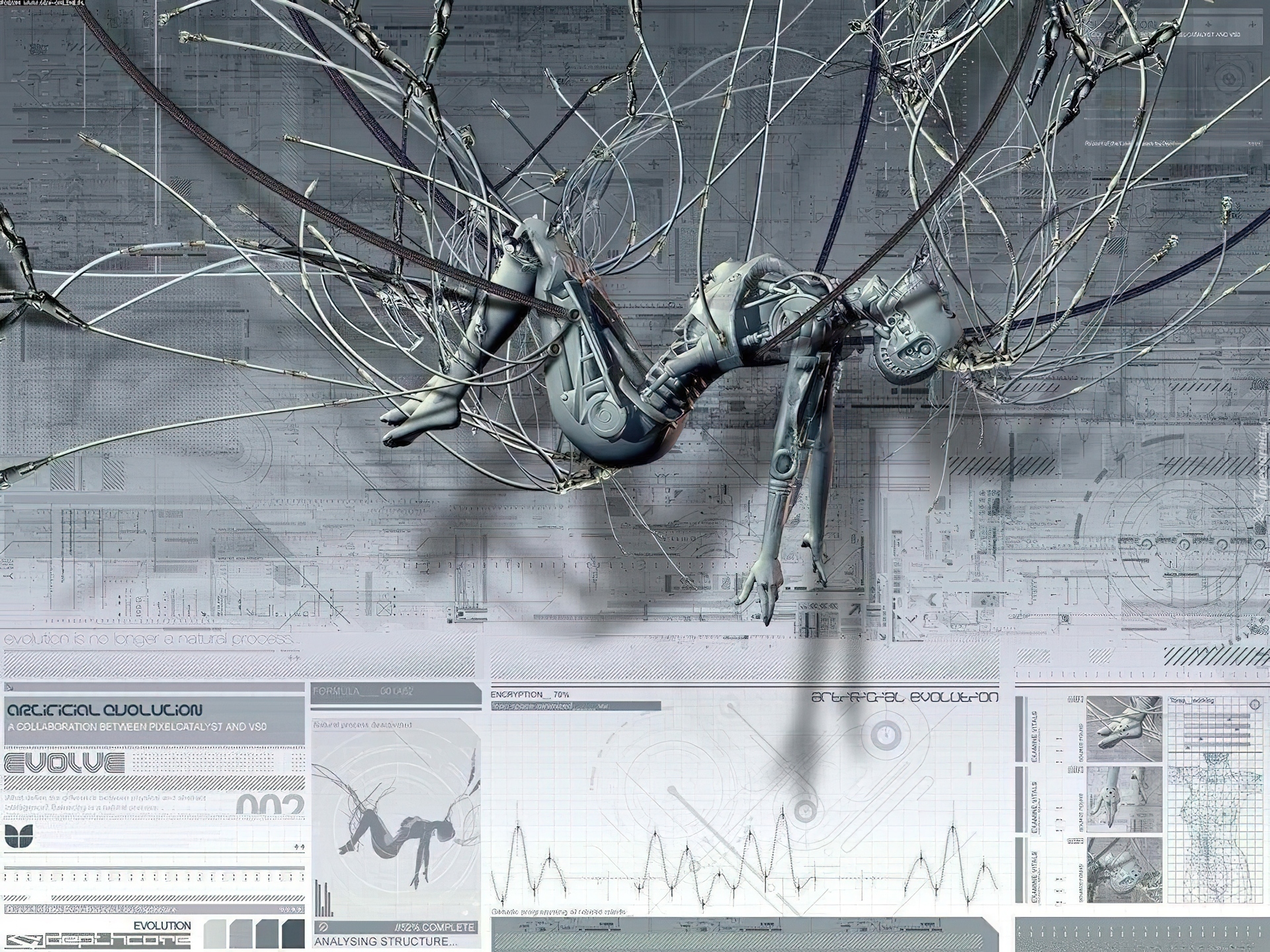 Edytor tapety: 3D, Wektorowa,robot, kable