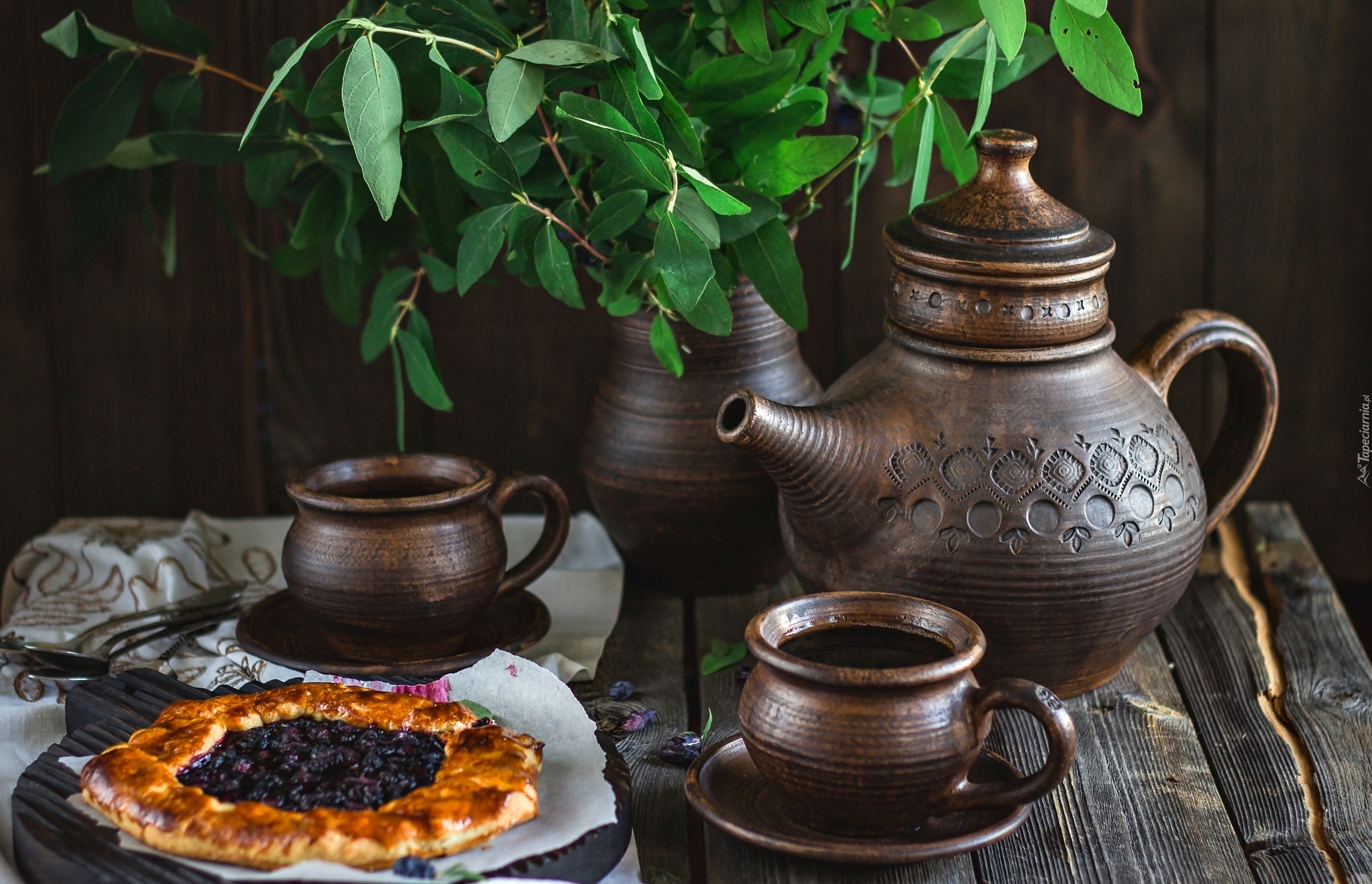 Edytor tapety: Herbata, Filiżanki, Imbryk, Pizza