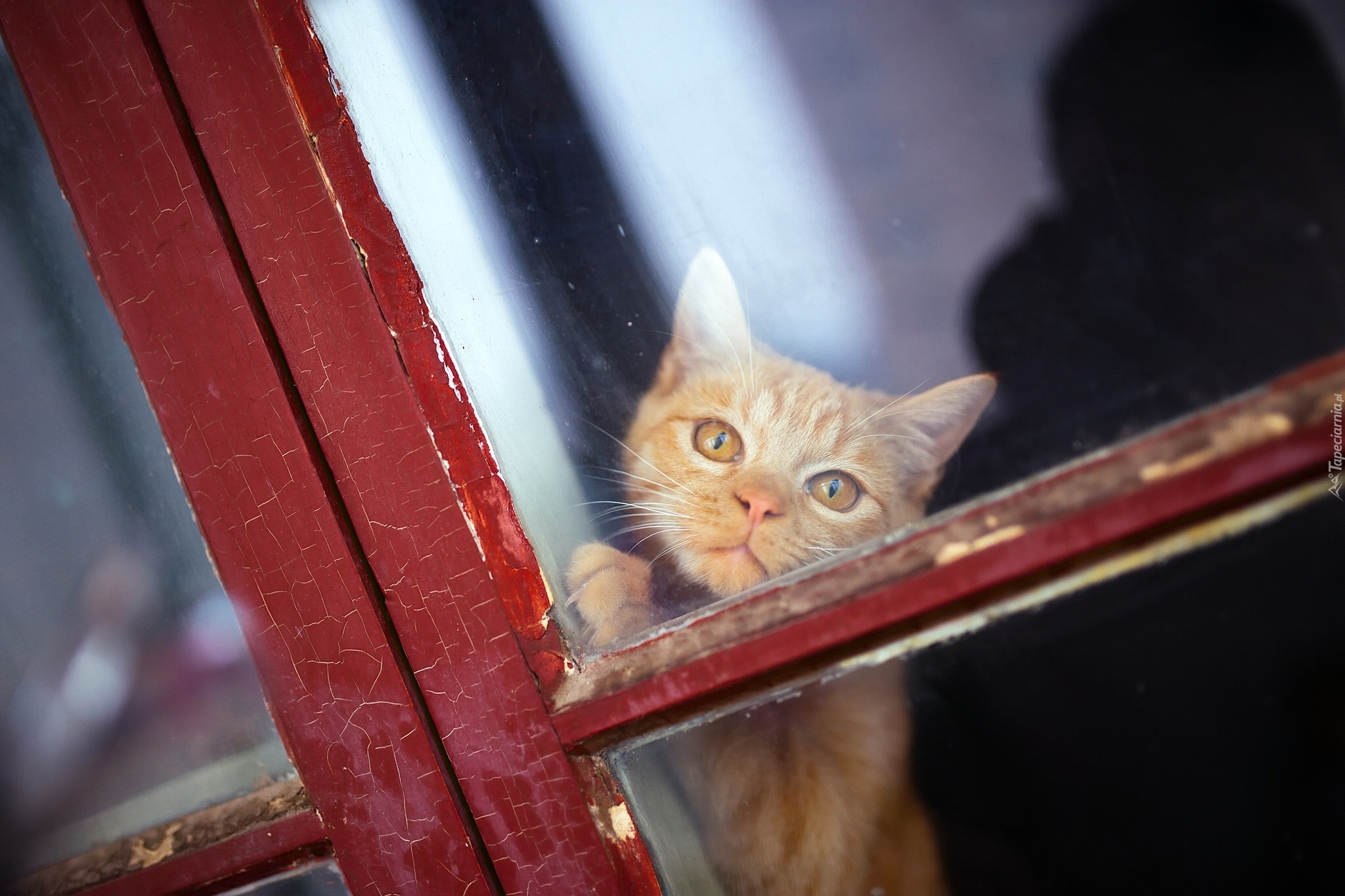 Edytor tapety: Rudy, Kot, Okno, Szyba