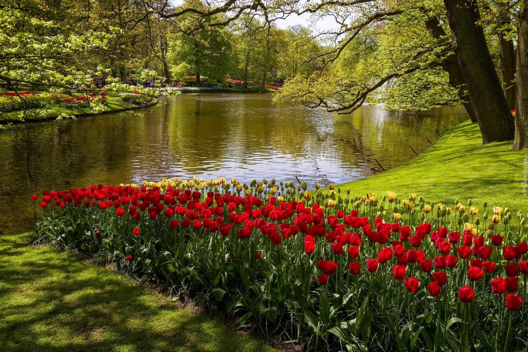 Edytor tapety: Tulipany, Rzeka, Park, Kaukenhof, W, Lisse, Wiosna, Holandia