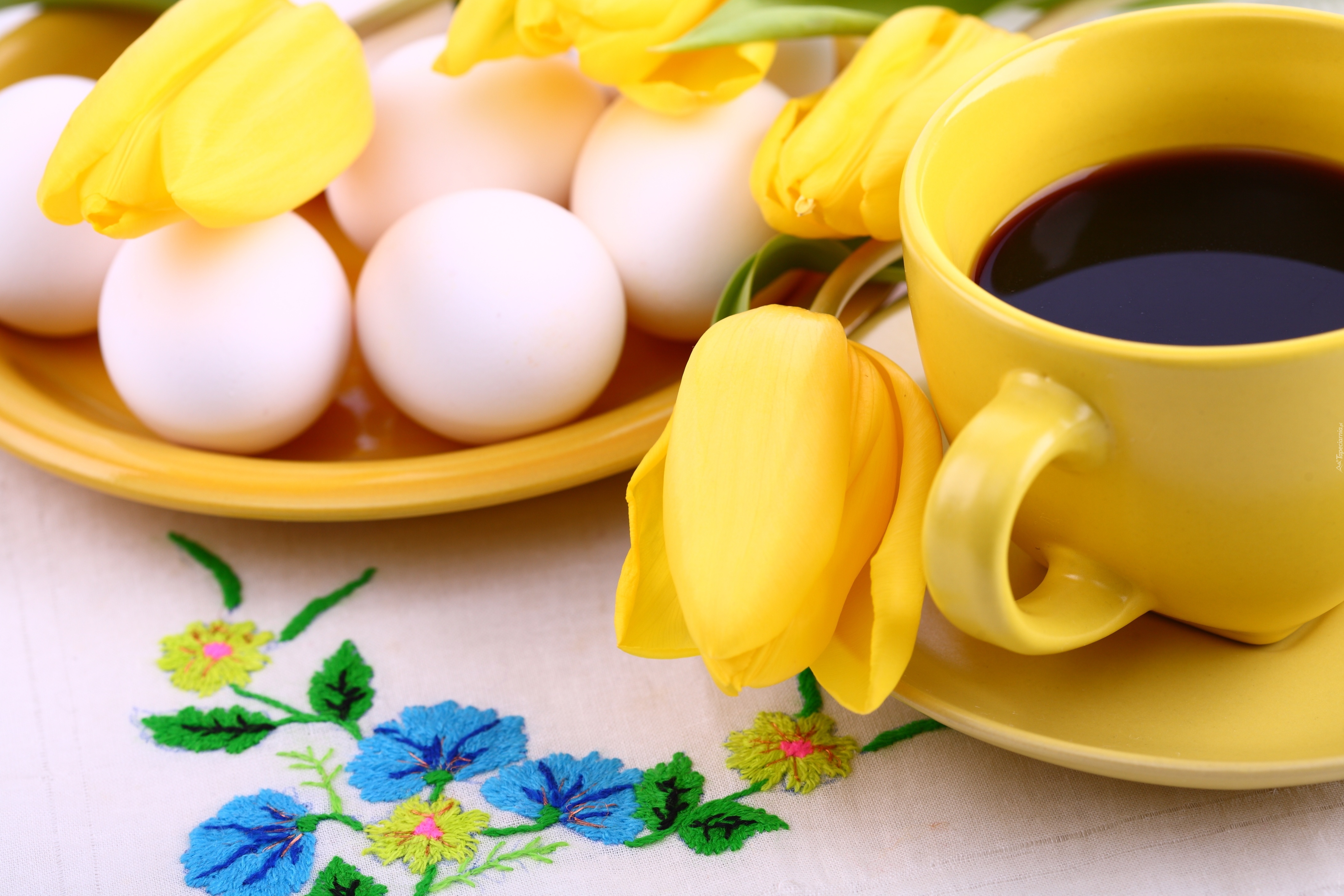 Edytor tapety: Kawa, Jajka, Tulipany