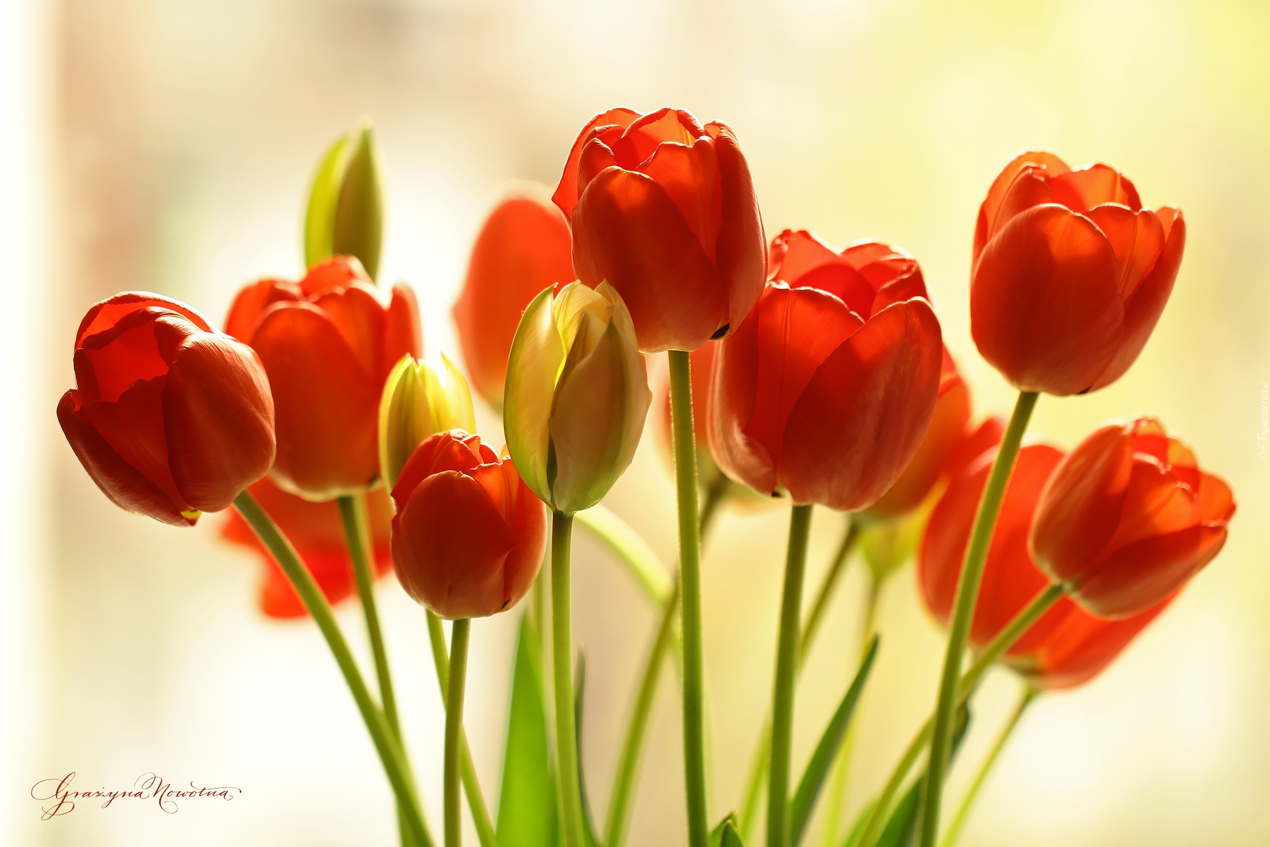 Edytor tapety: Czerwone, Tulipany, Kwiaty