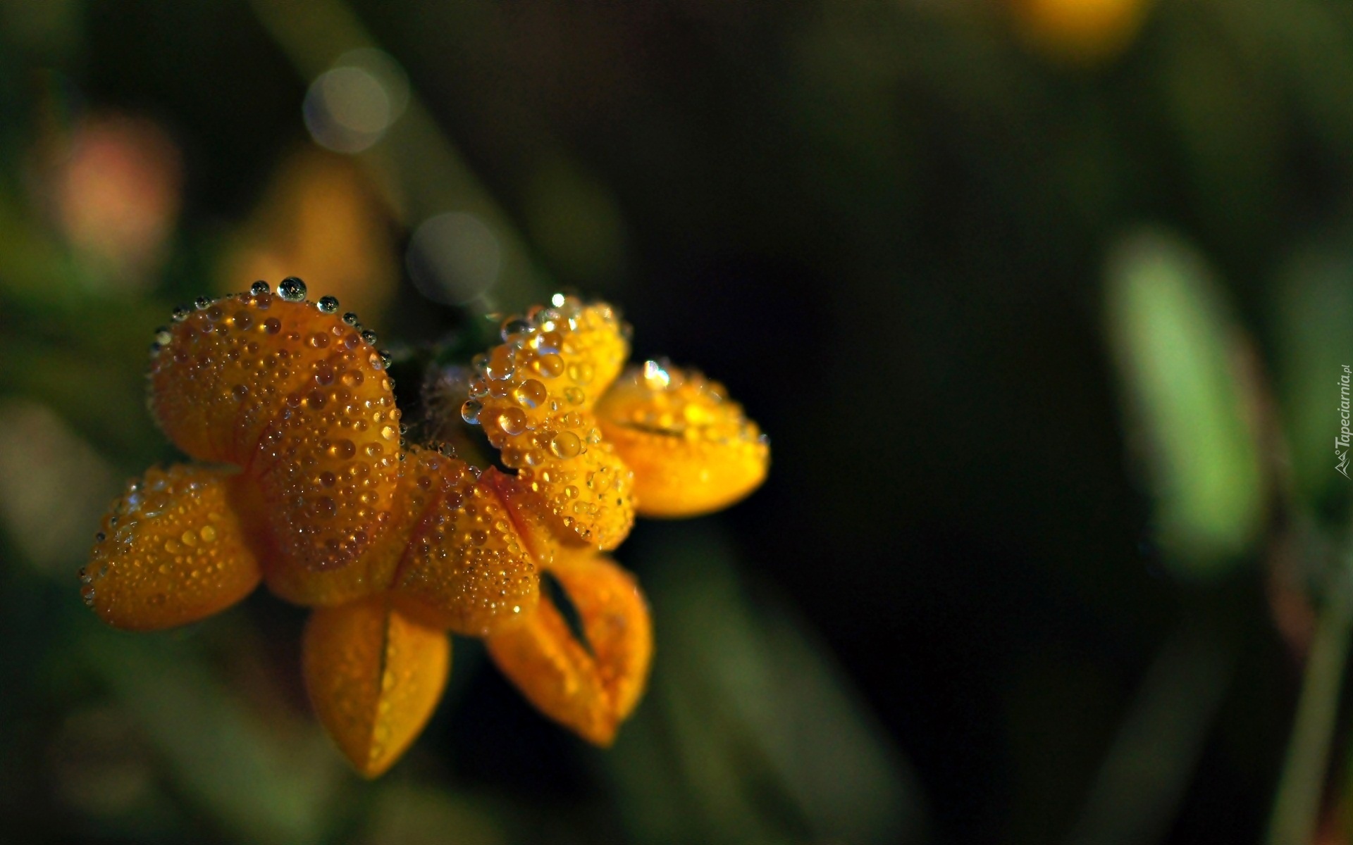 Edytor tapety: Makro, Żółte, Kwiaty, Krople, Wody, Makro