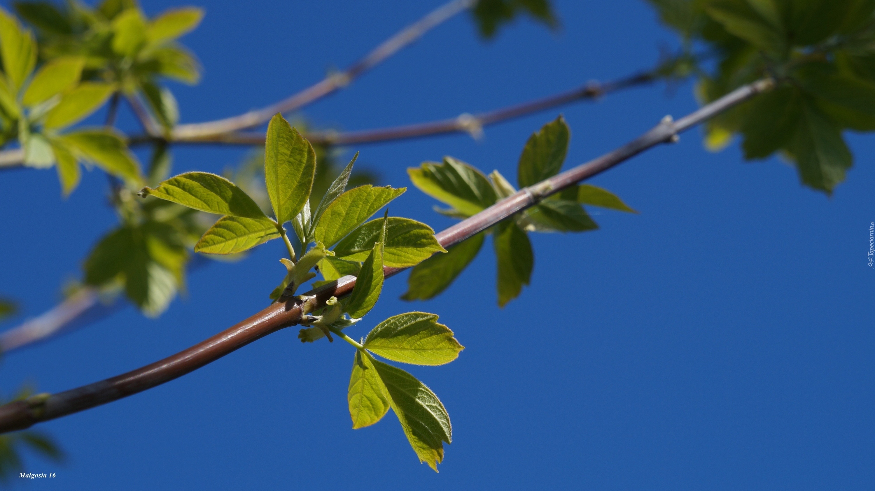 Edytor tapety: Roślina, Gałązka, Zielone, Liście, Niebieskie, Niebo