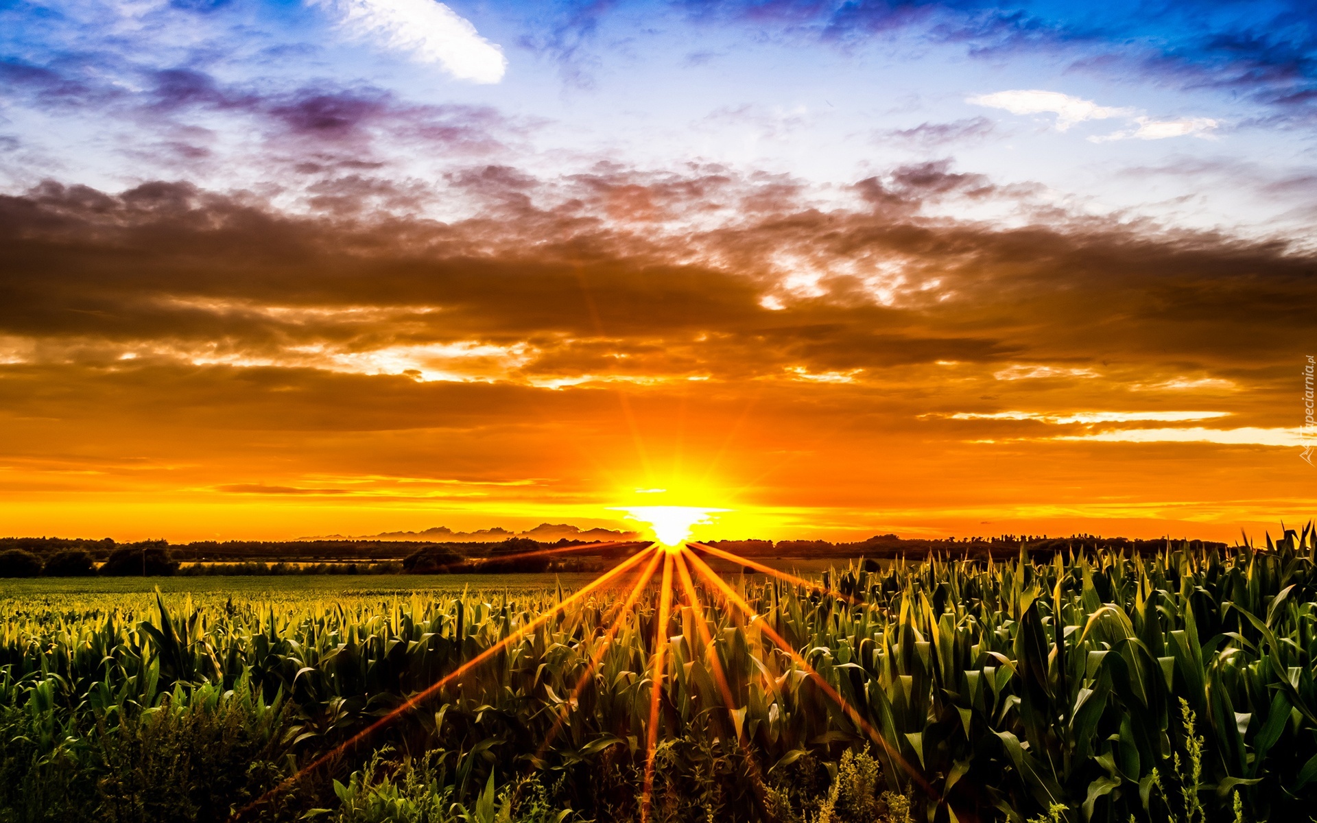 Edytor tapety: Łąka, Wschód słońca, Chmury, Niebo