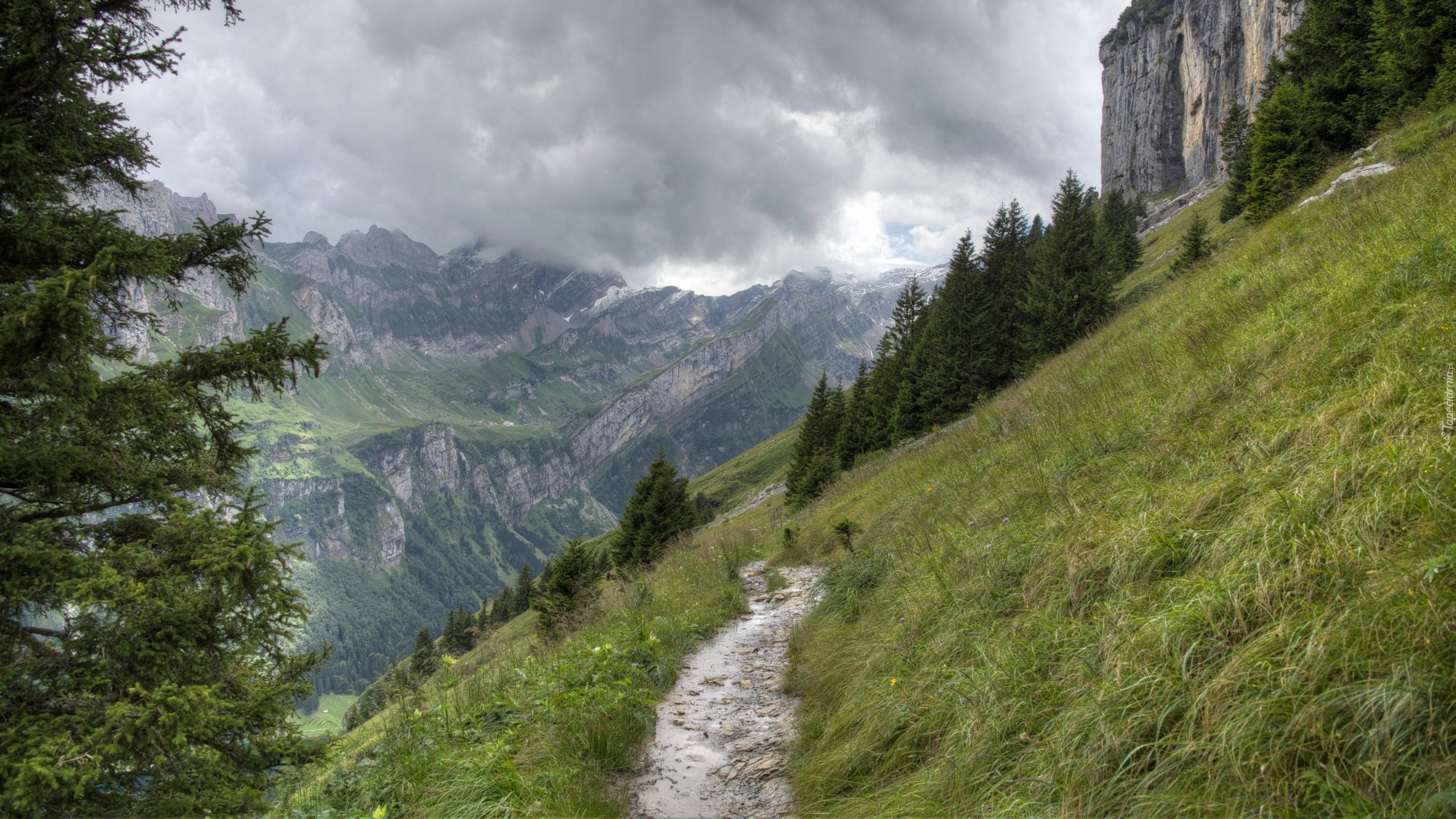 Edytor tapety: Góry, Ścieżka, Drzewa