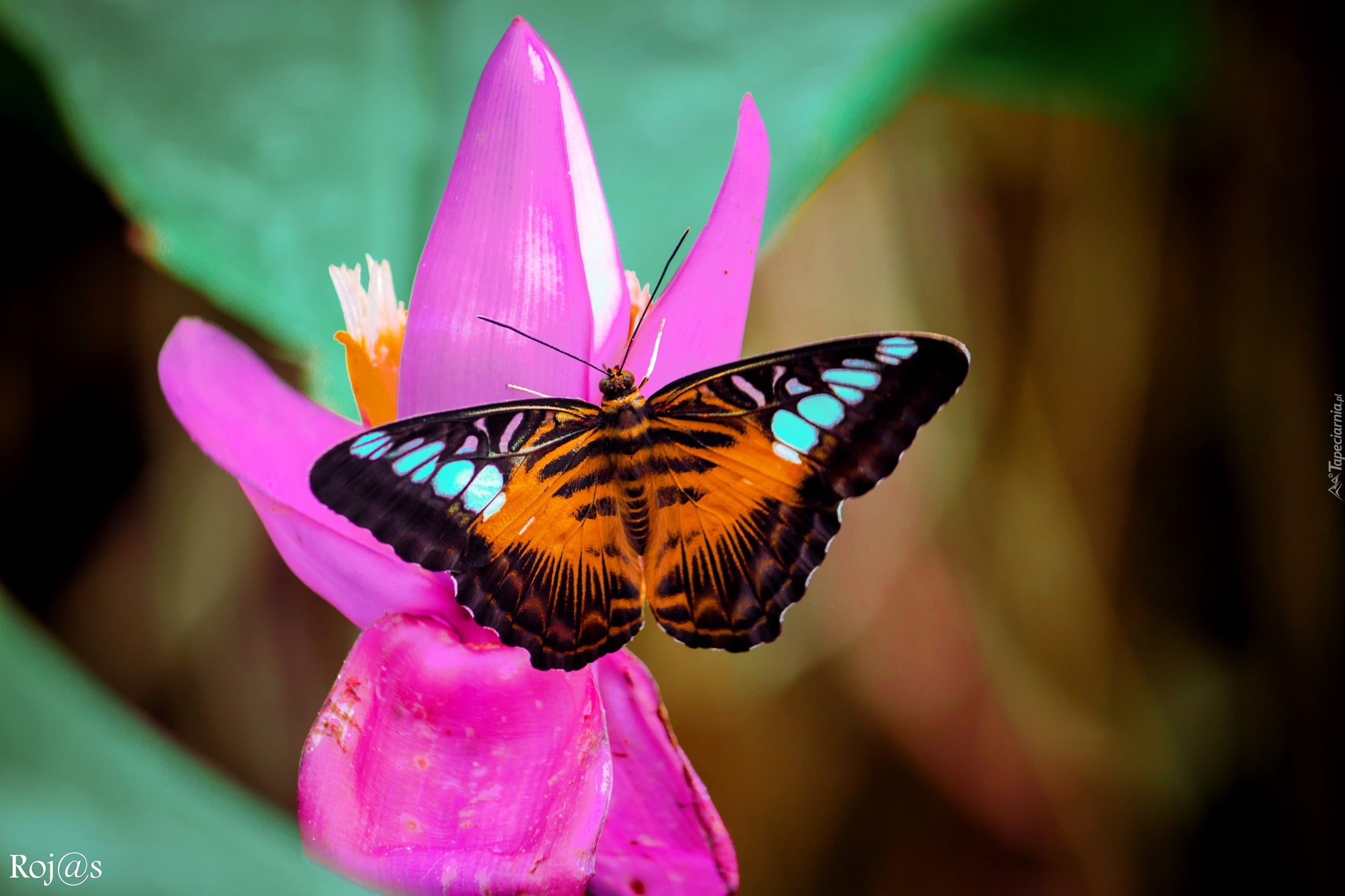Edytor tapety: Kolorowy, Motyl, Różowy, Kwiat, Rozmyte, Tło