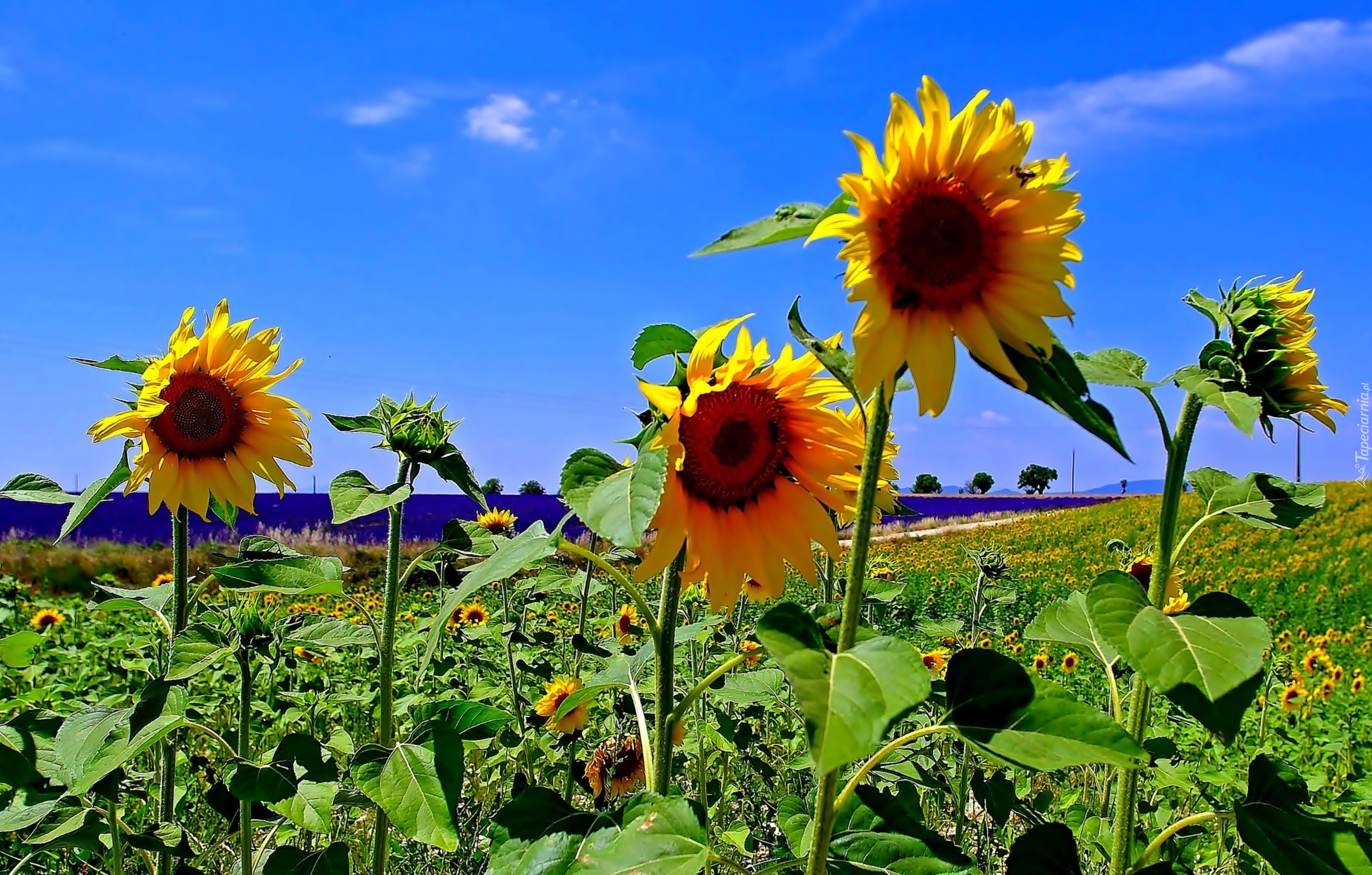 Edytor tapety: Pole, Słoneczników, Lato