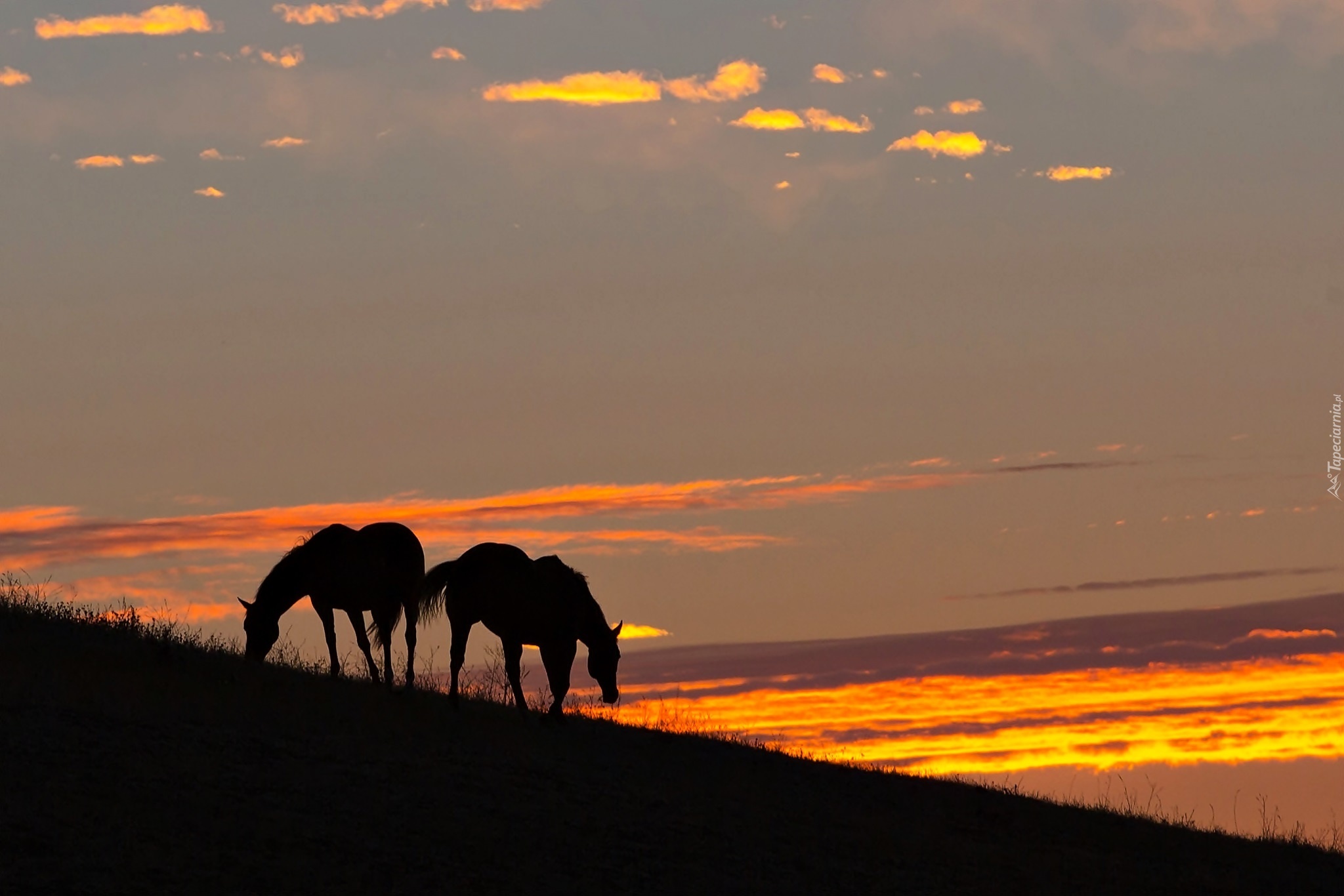 Edytor tapety: Konie, Pastwisko, Zachód, Słońca