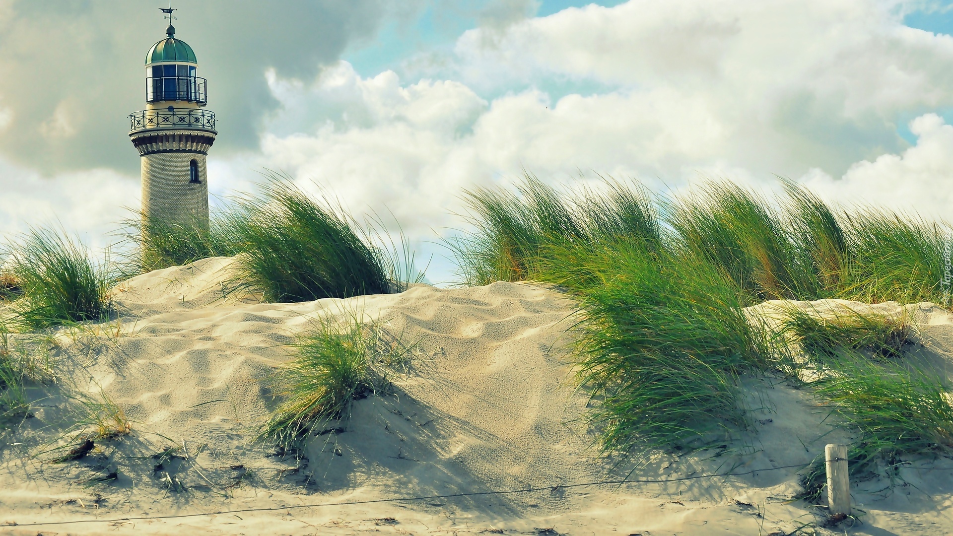 Edytor tapety: Latarnia, Morska, Plaża, Wydmy, Trawa