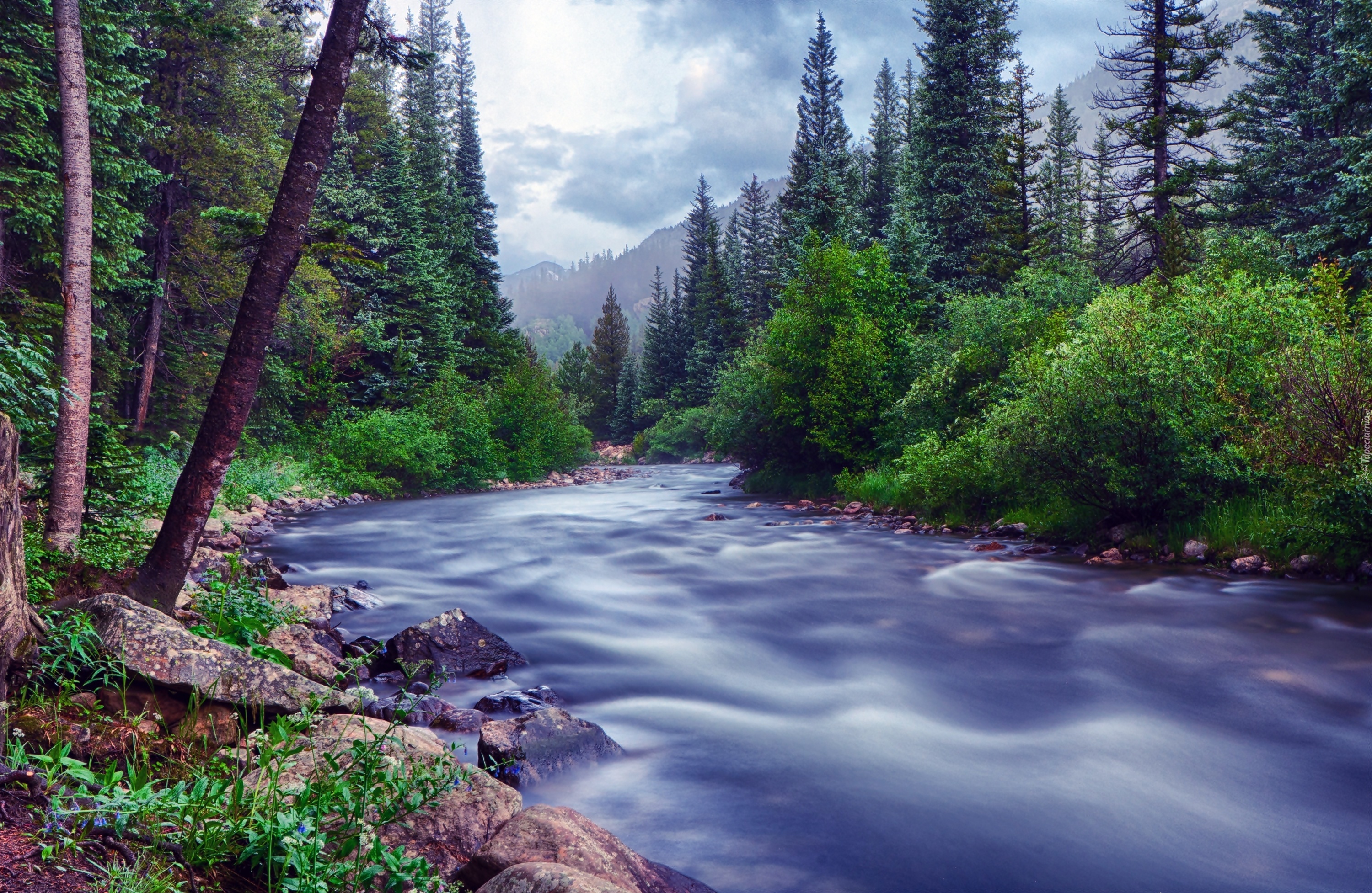 Edytor tapety: Góry, Las, Rzeka, Kamienie