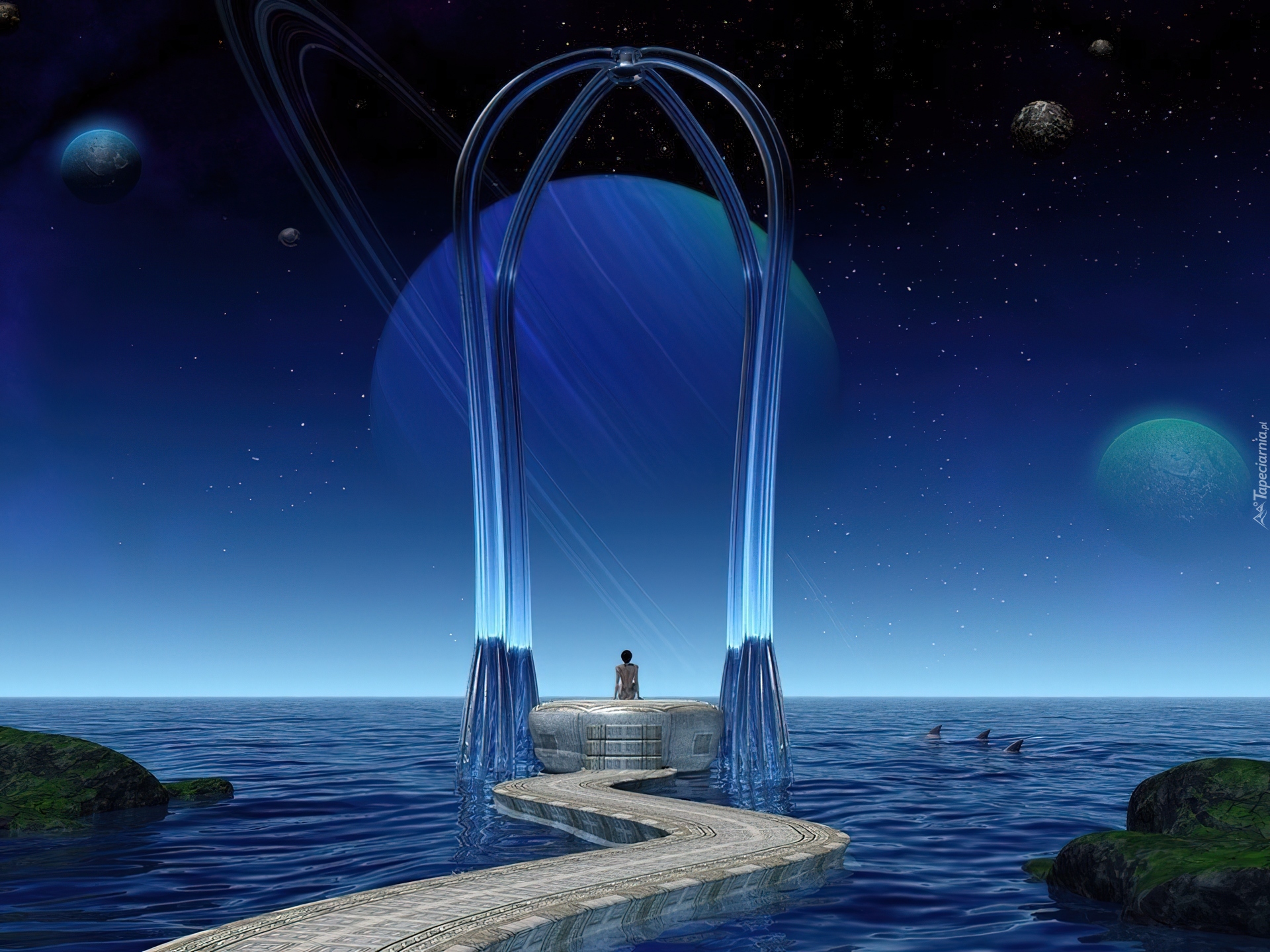 Edytor tapety: 3D, Wektorowa,woda, planety
