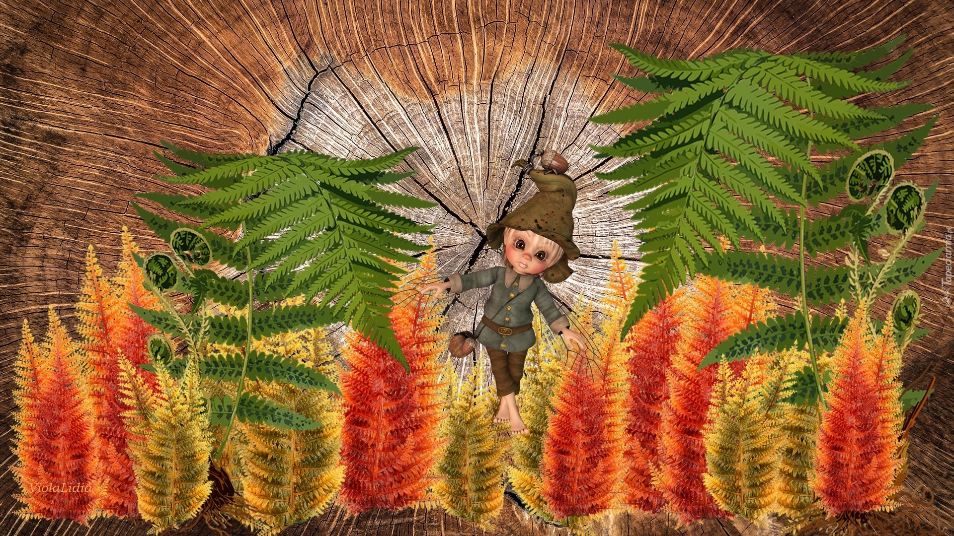 Edytor tapety: Grafika, Paprocie, Laleczka, Elf