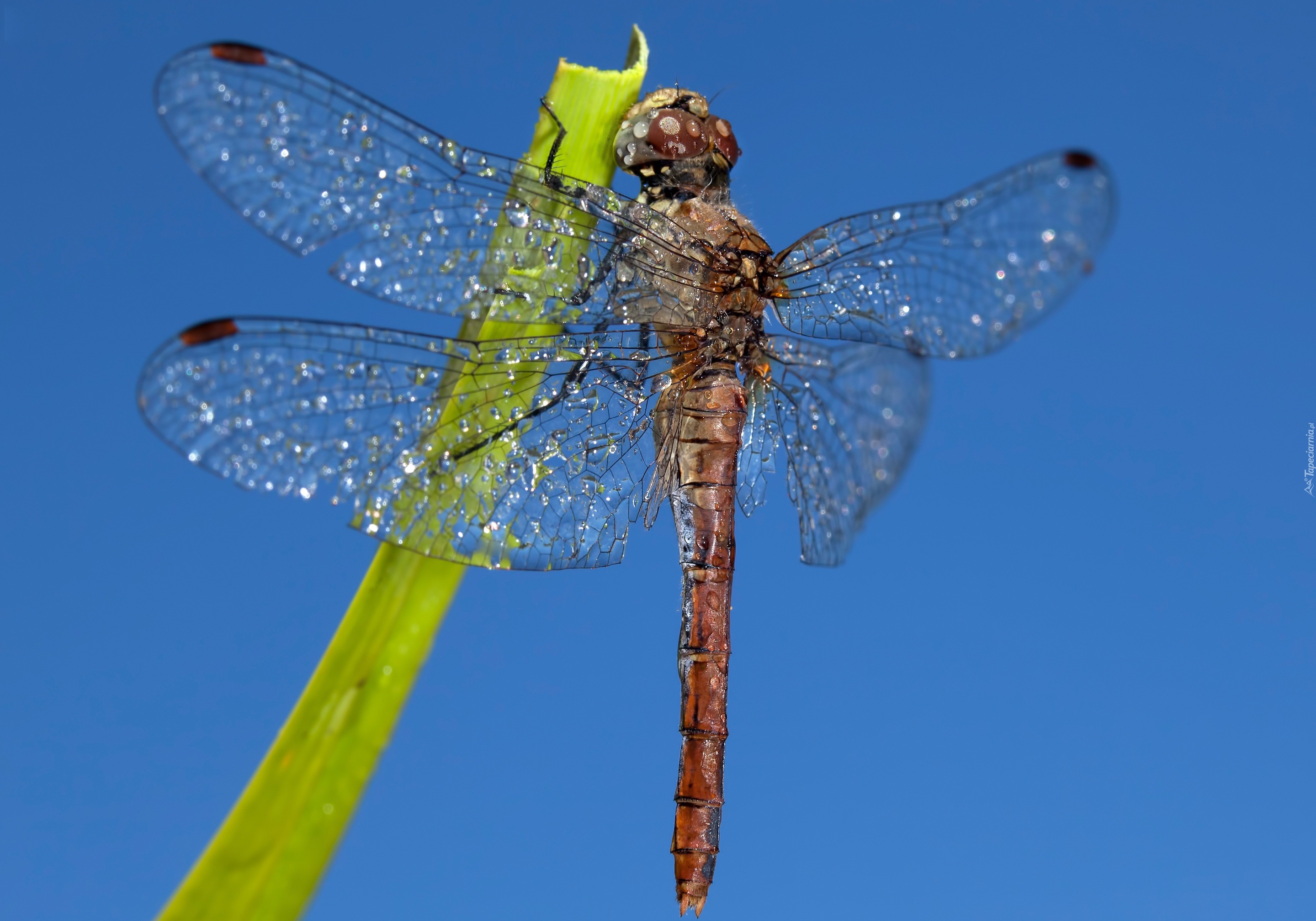 Edytor tapety: Ważka, Źdźbło, Krople, Makro
