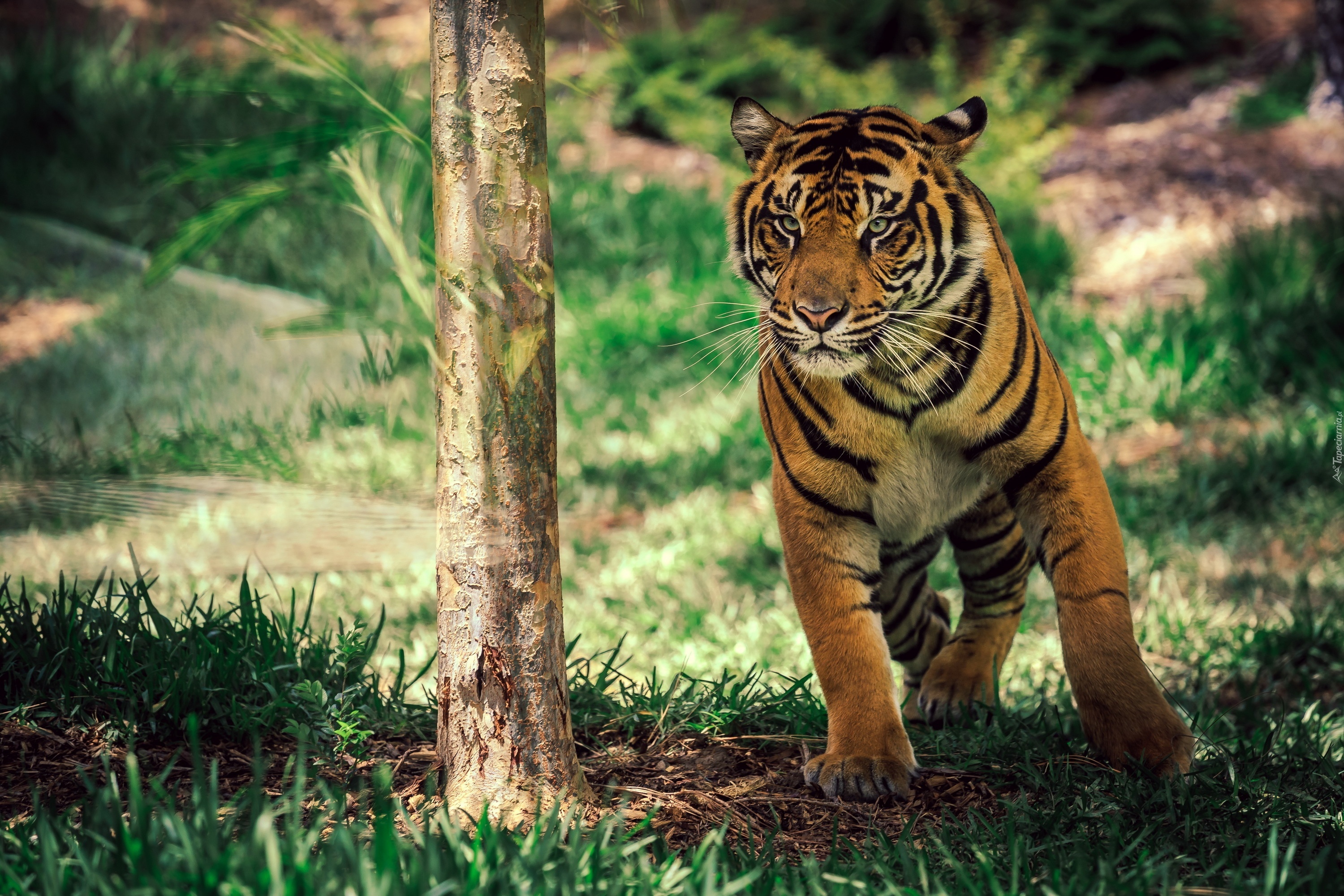 Edytor tapety: Tygrys, Drzewo, Trawa