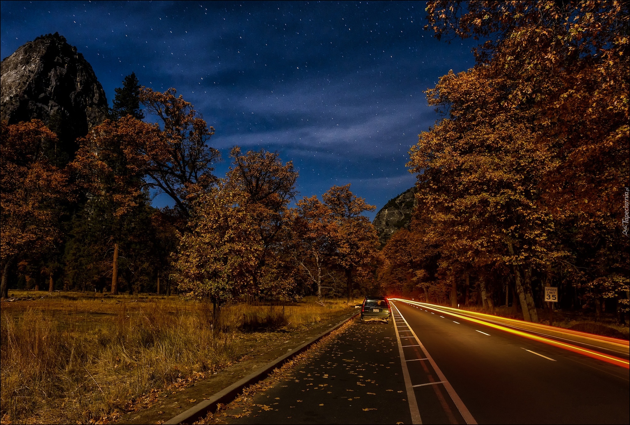 Edytor tapety: Jesień, Las, Droga, Samochód