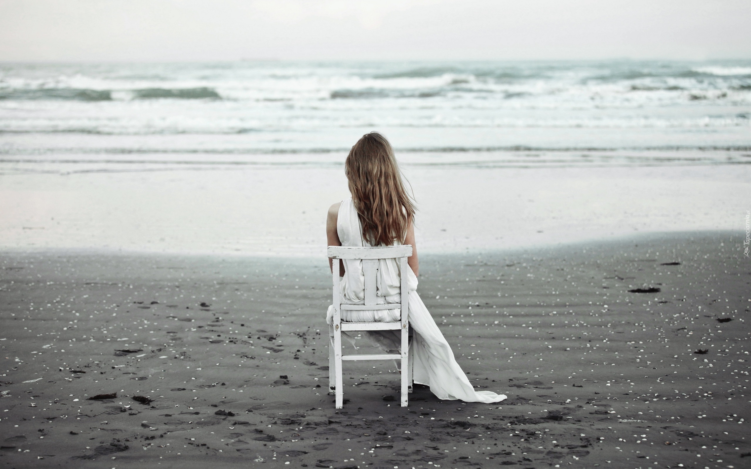 Edytor tapety: Dziewczyna, Krzesło, Morze