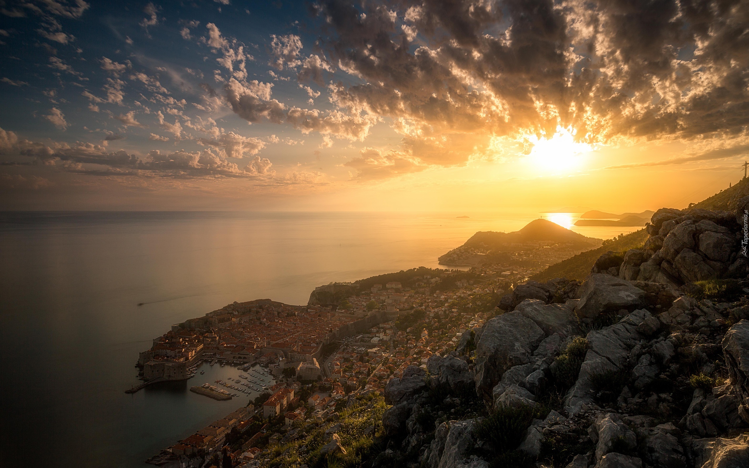 Edytor tapety: Morze, Zachód słońca, Chmury, Wybrzeże