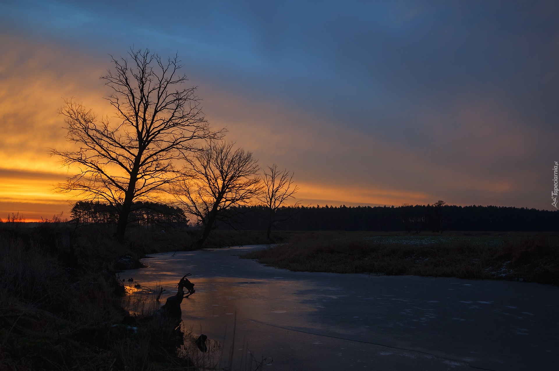Edytor tapety: Poranek, Wschód, Woda, Rzeka, Staw, Rogalin