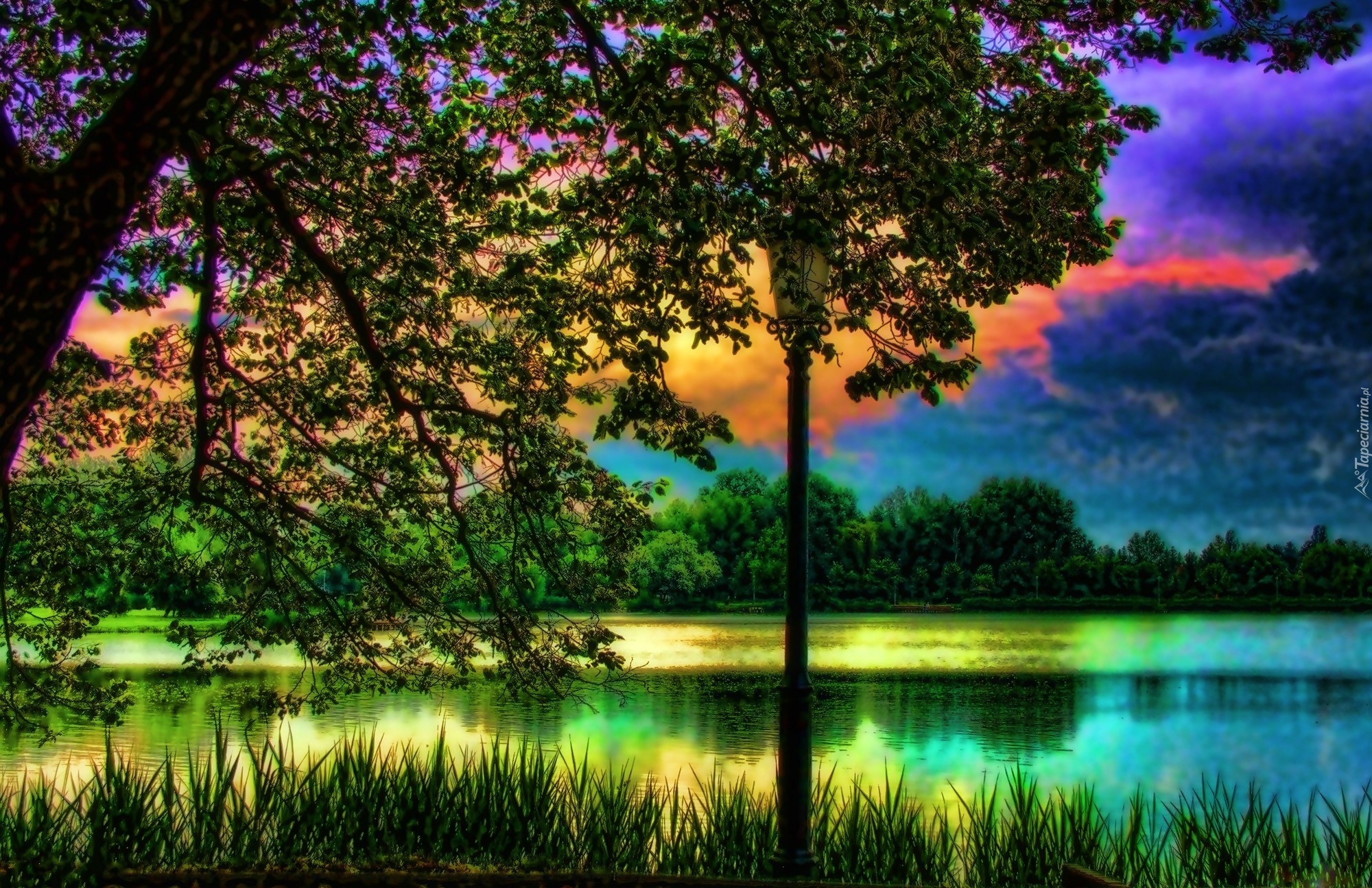 Edytor tapety: Las, Rzeka, Trawka