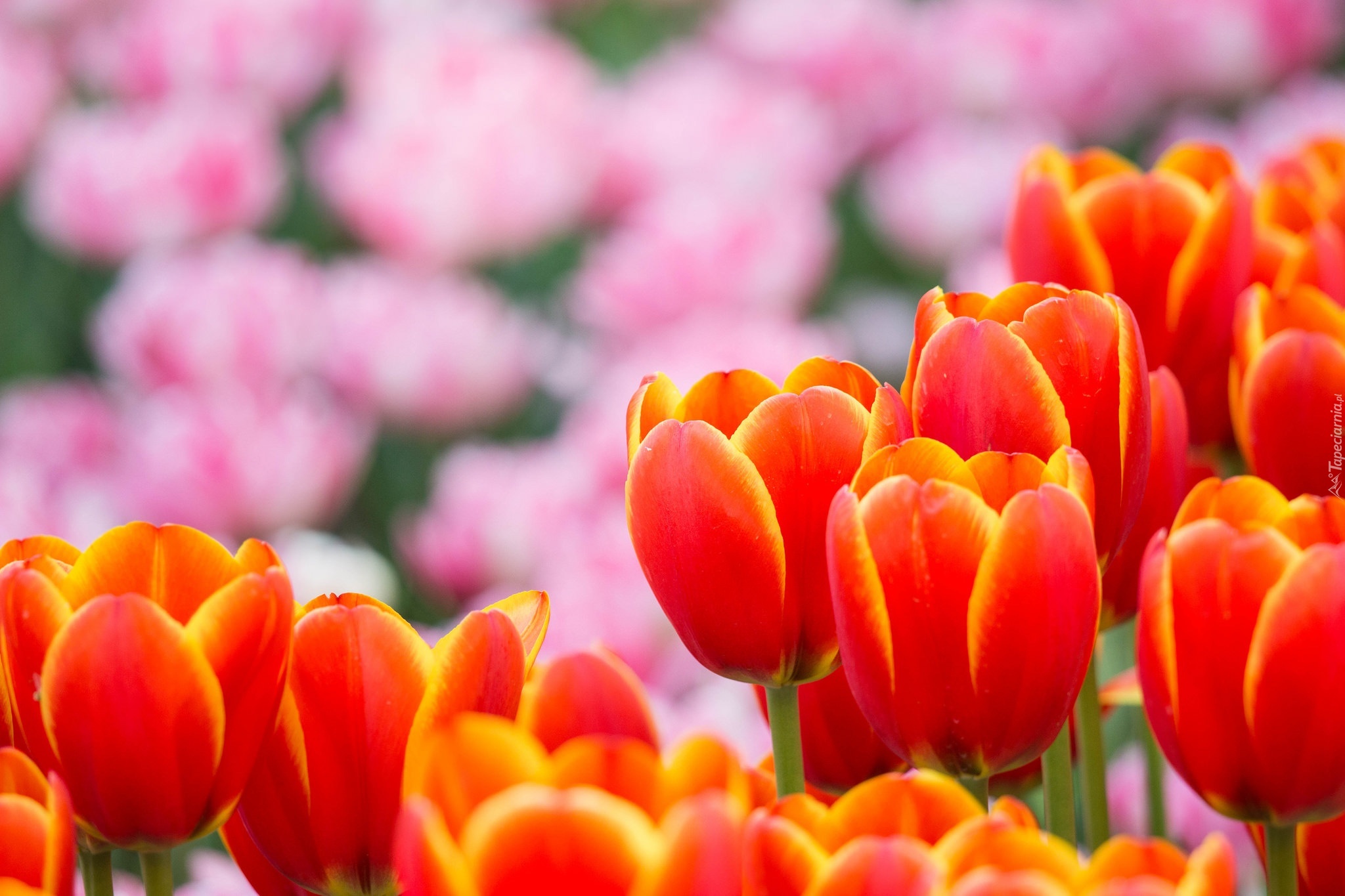 Edytor tapety: Czerwono, Żółte, Tulipany, Różowe, Rozmyte, Tło