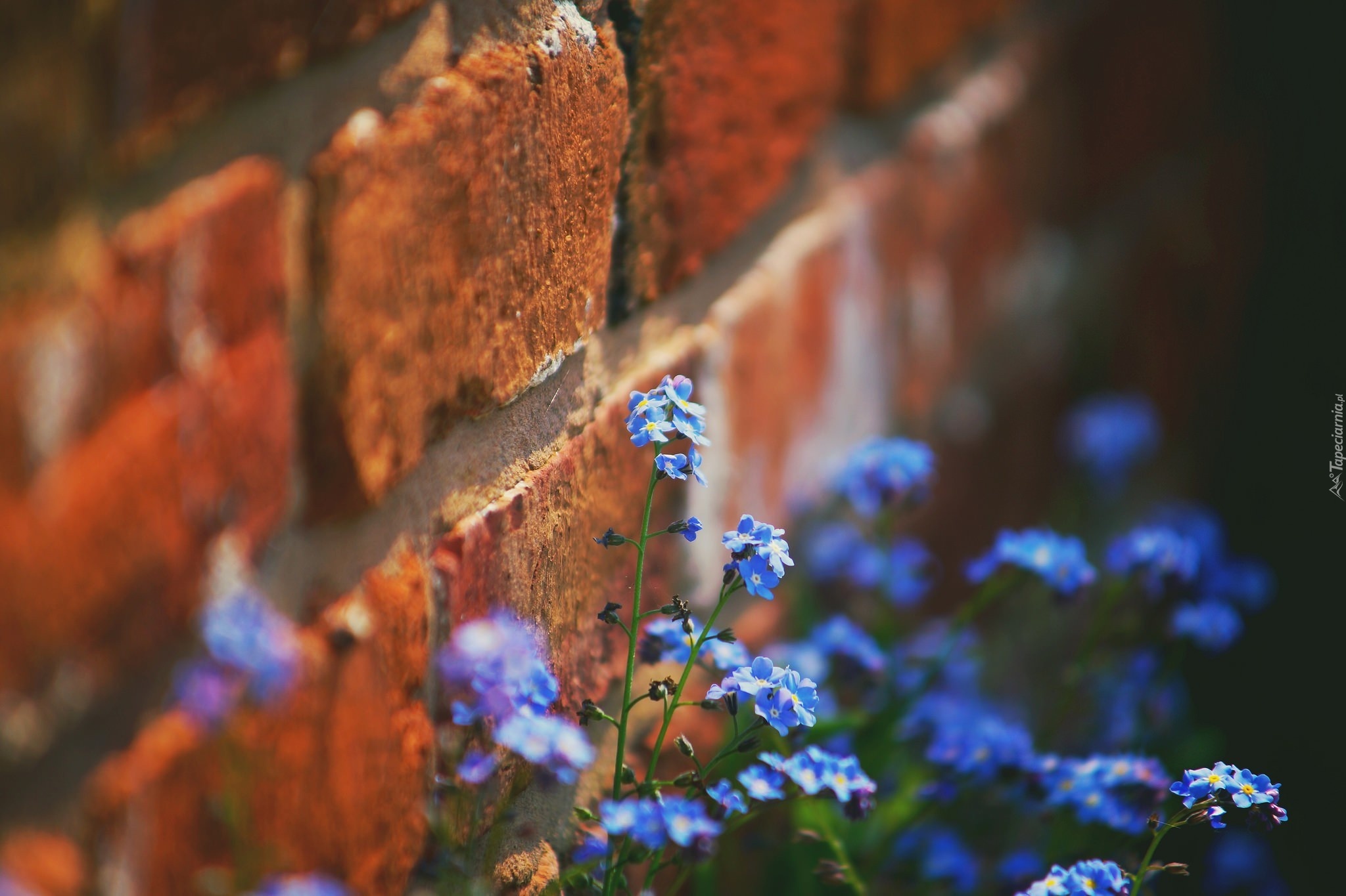 Edytor tapety: Kwiaty, Mur, Niezapominajki