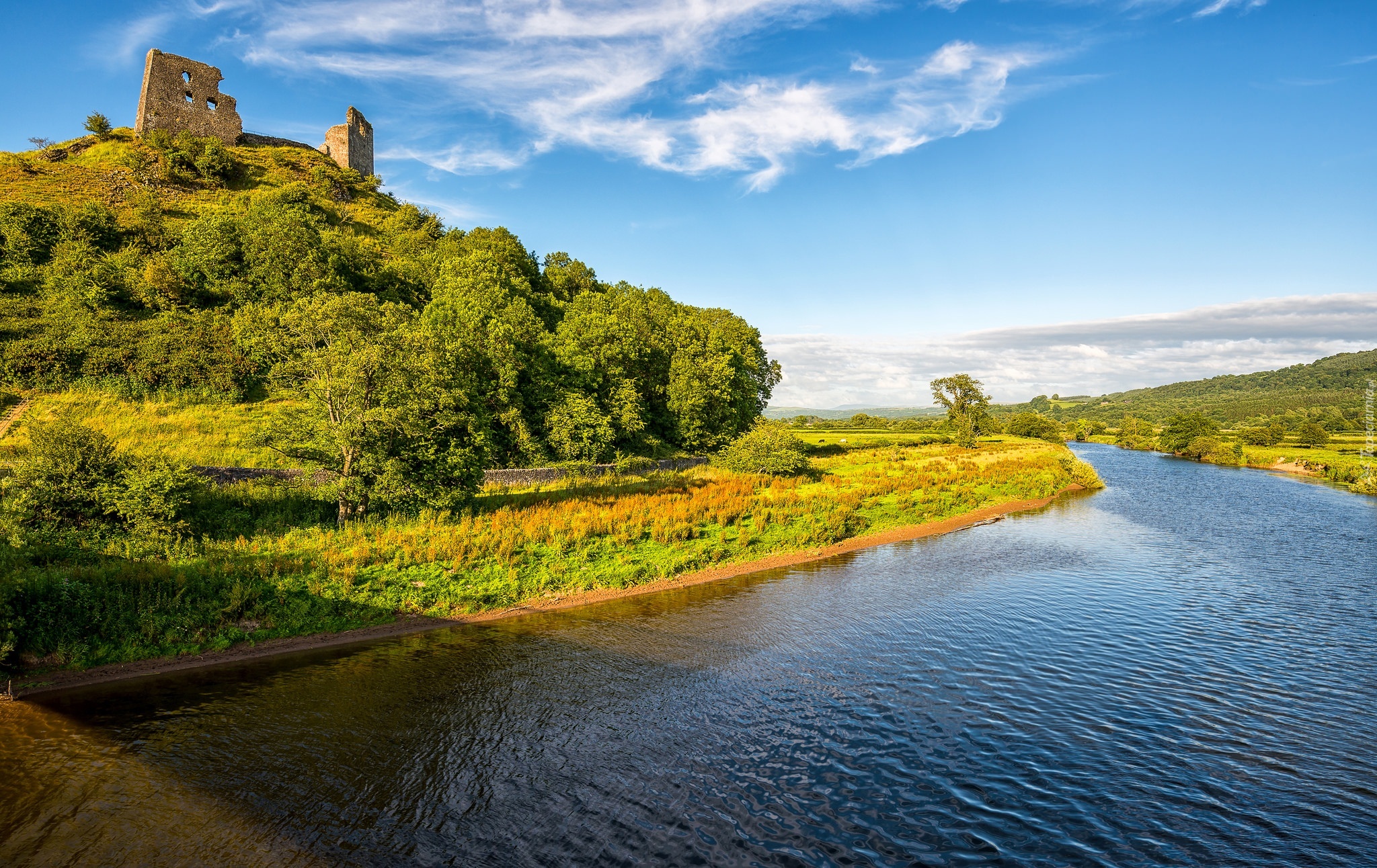 Edytor tapety: Rzeka, Drzewa, Ruiny, Zamku