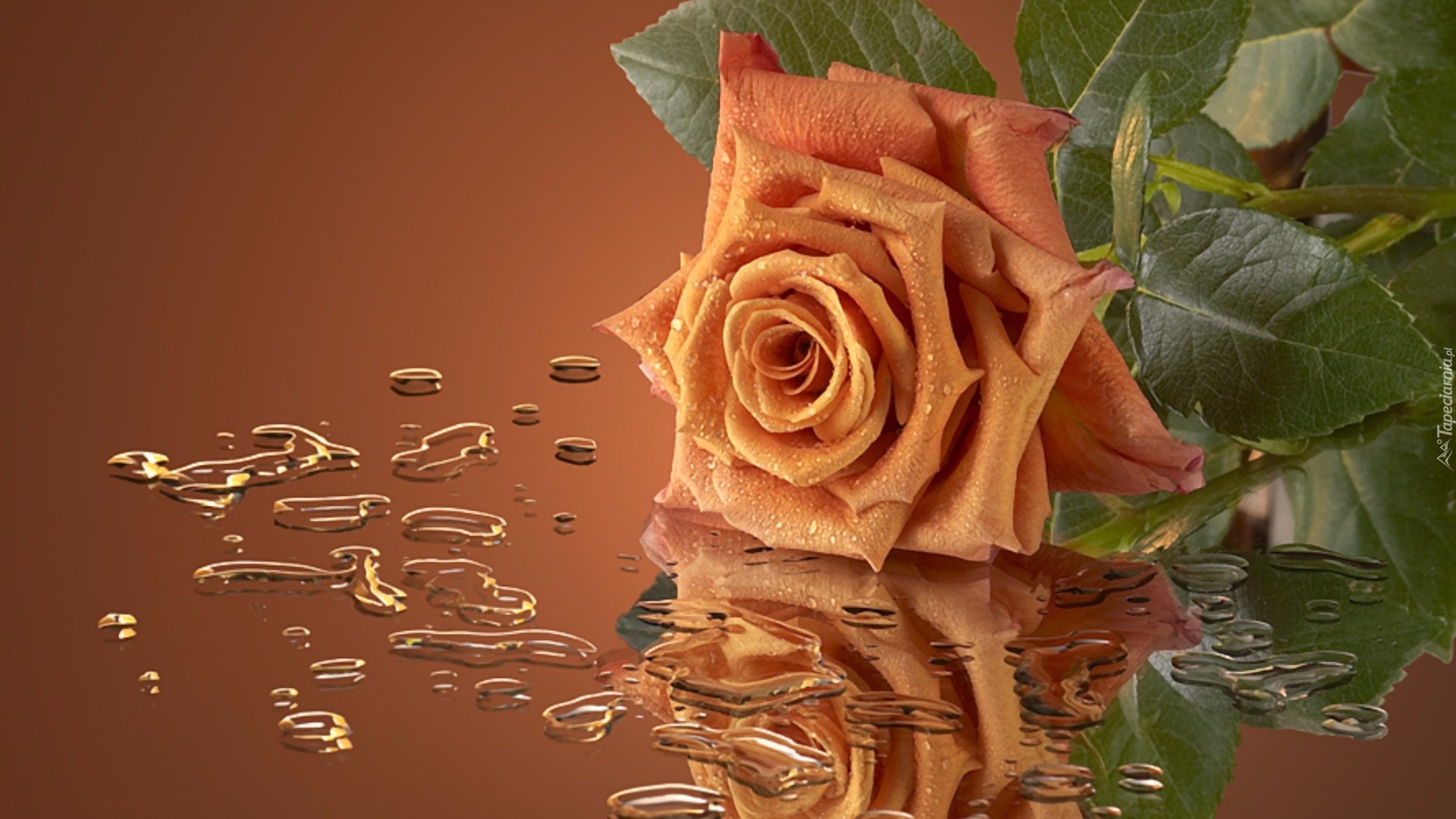 Edytor tapety: Róża, Odbicie, Lustrzane, Woda, Krople