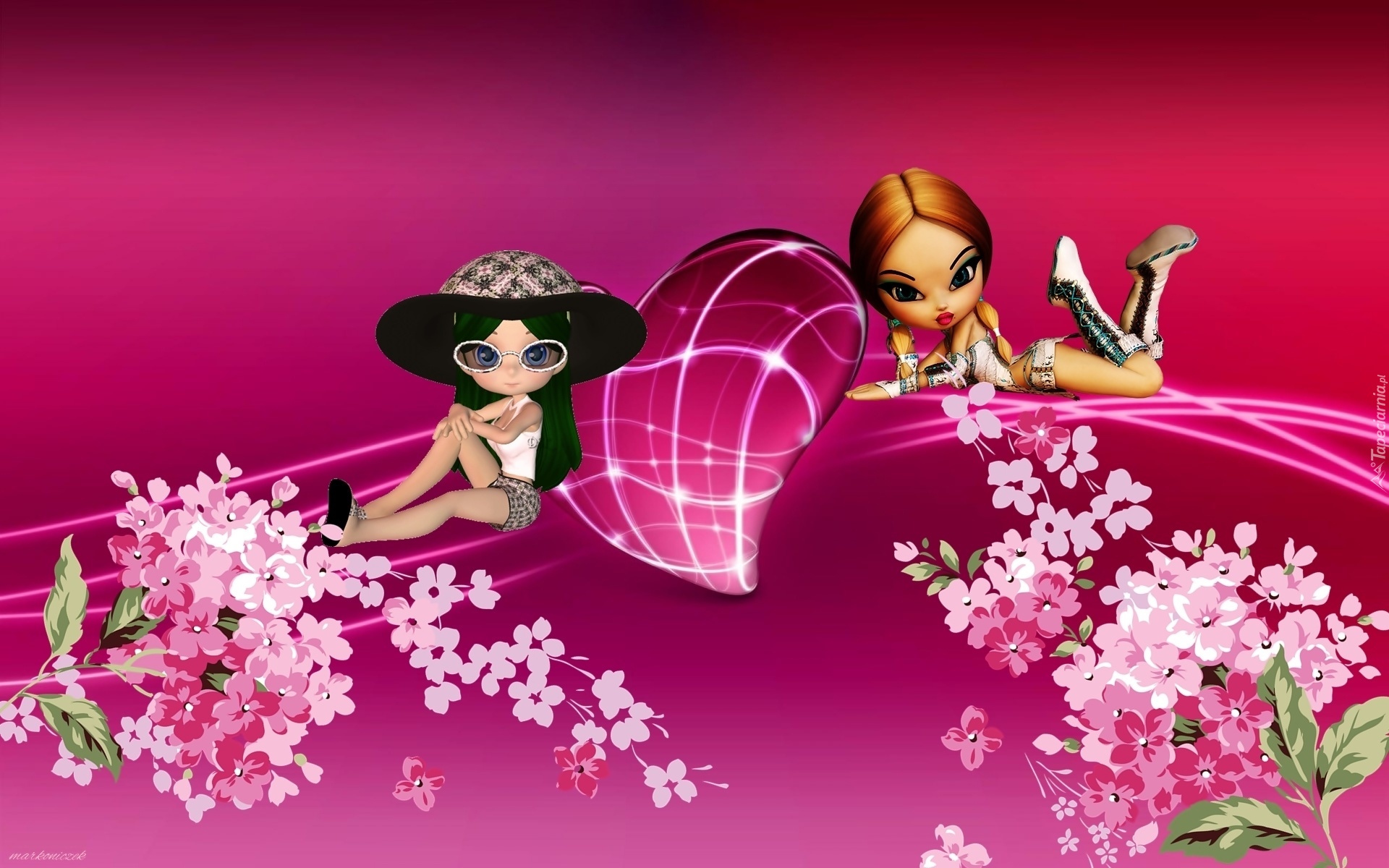 Edytor tapety: Laleczki, Kwiaty, Serce