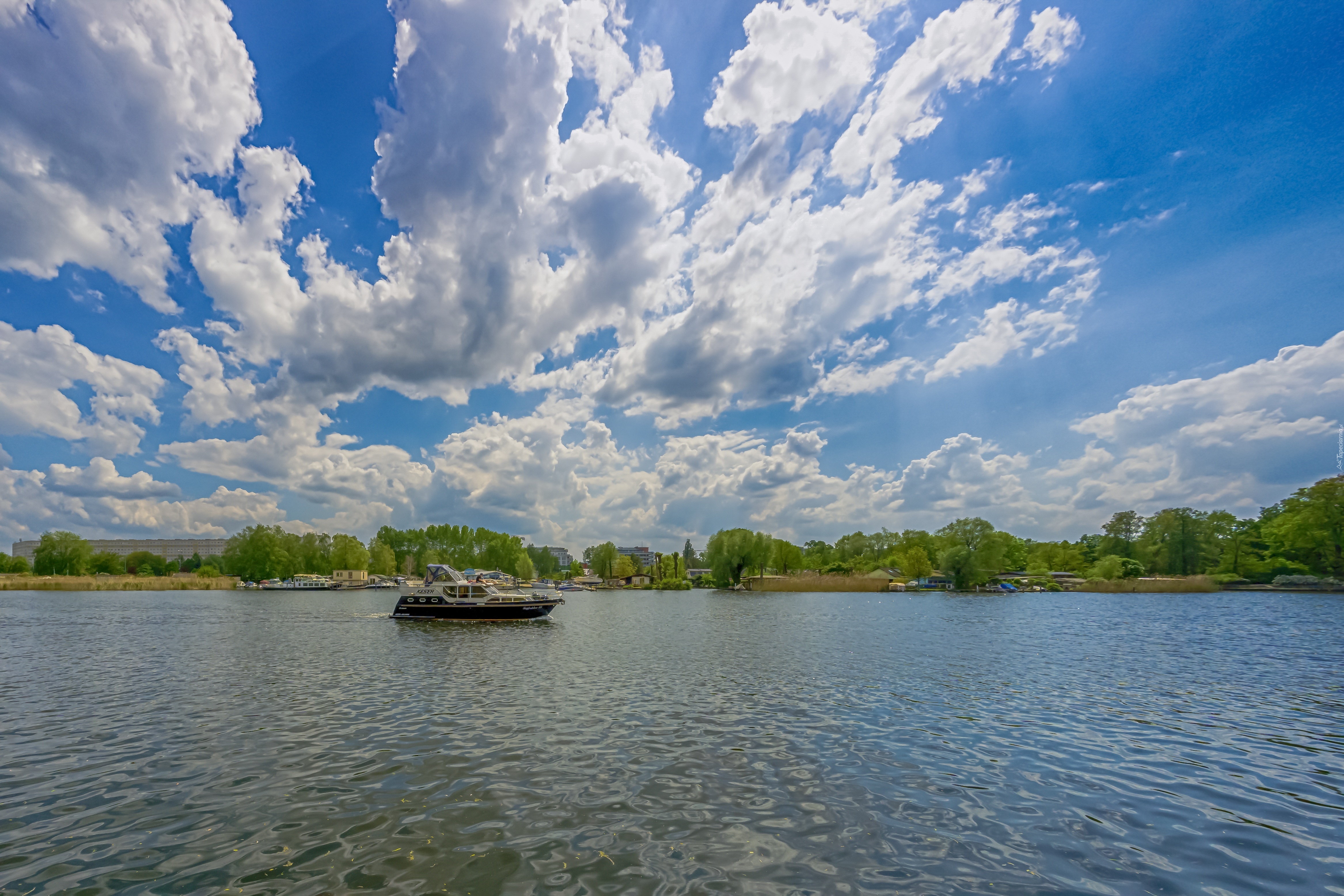 Edytor tapety: Jezioro, Chmury, Statek, Turystyczny
