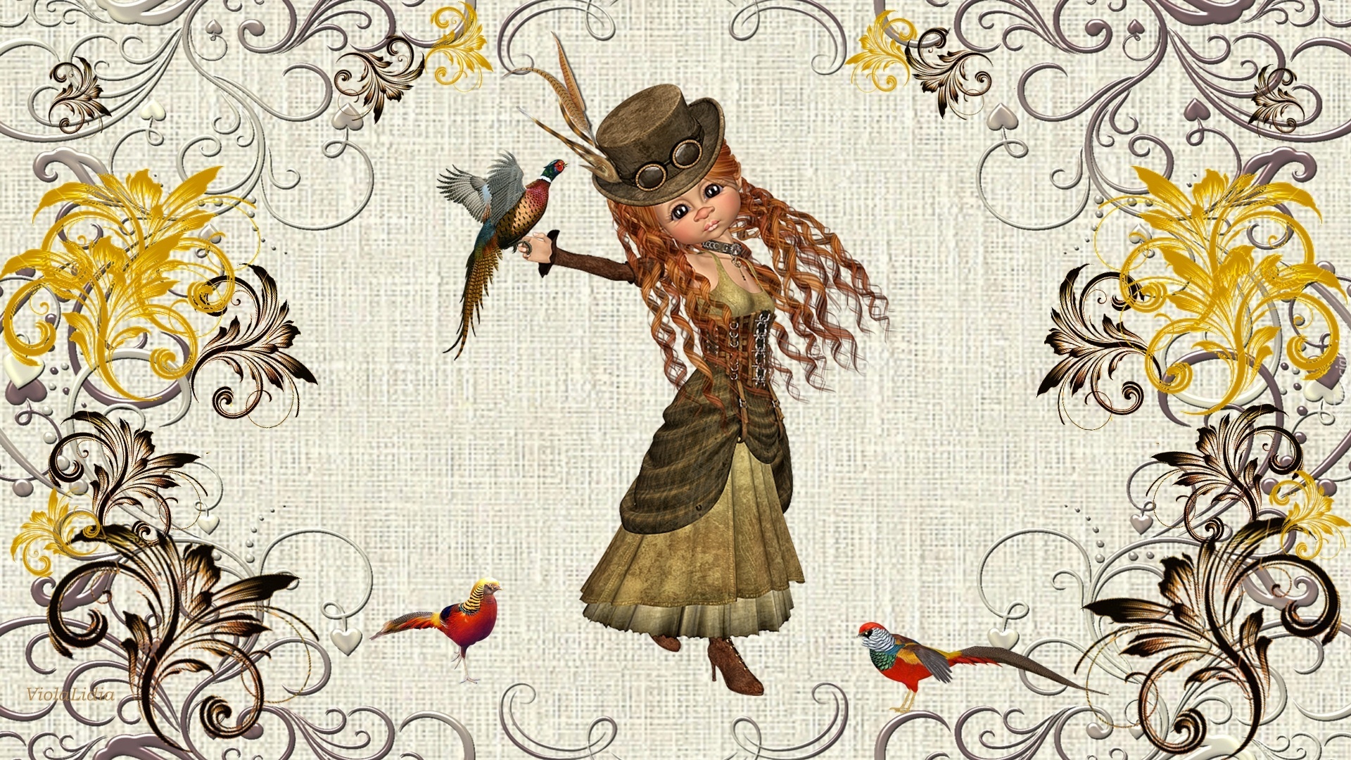 Edytor tapety: Grafika, Laleczka, Ptaki, Bażanty