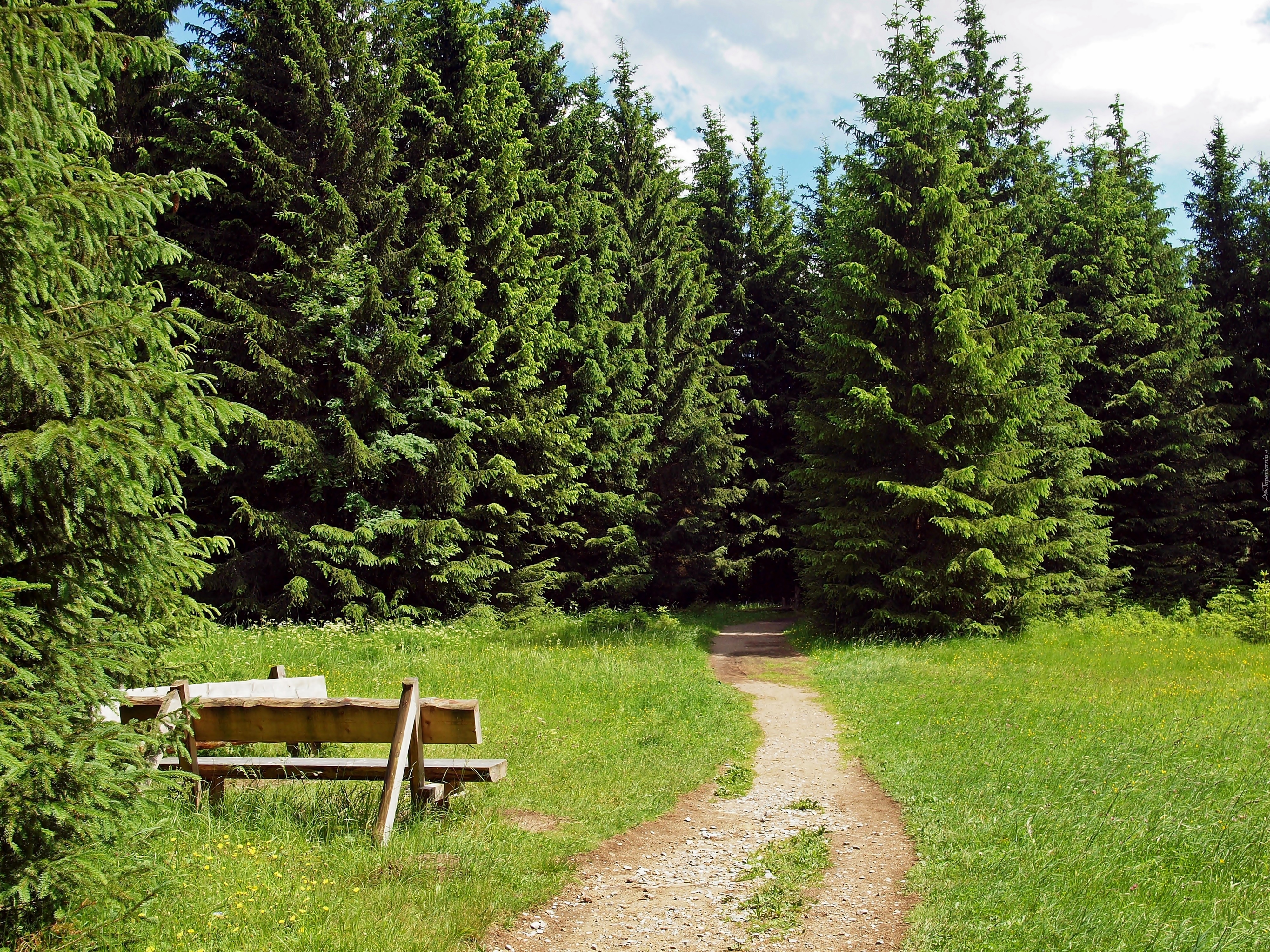 Edytor tapety: Ławka, Ścieżka, Las, Lato