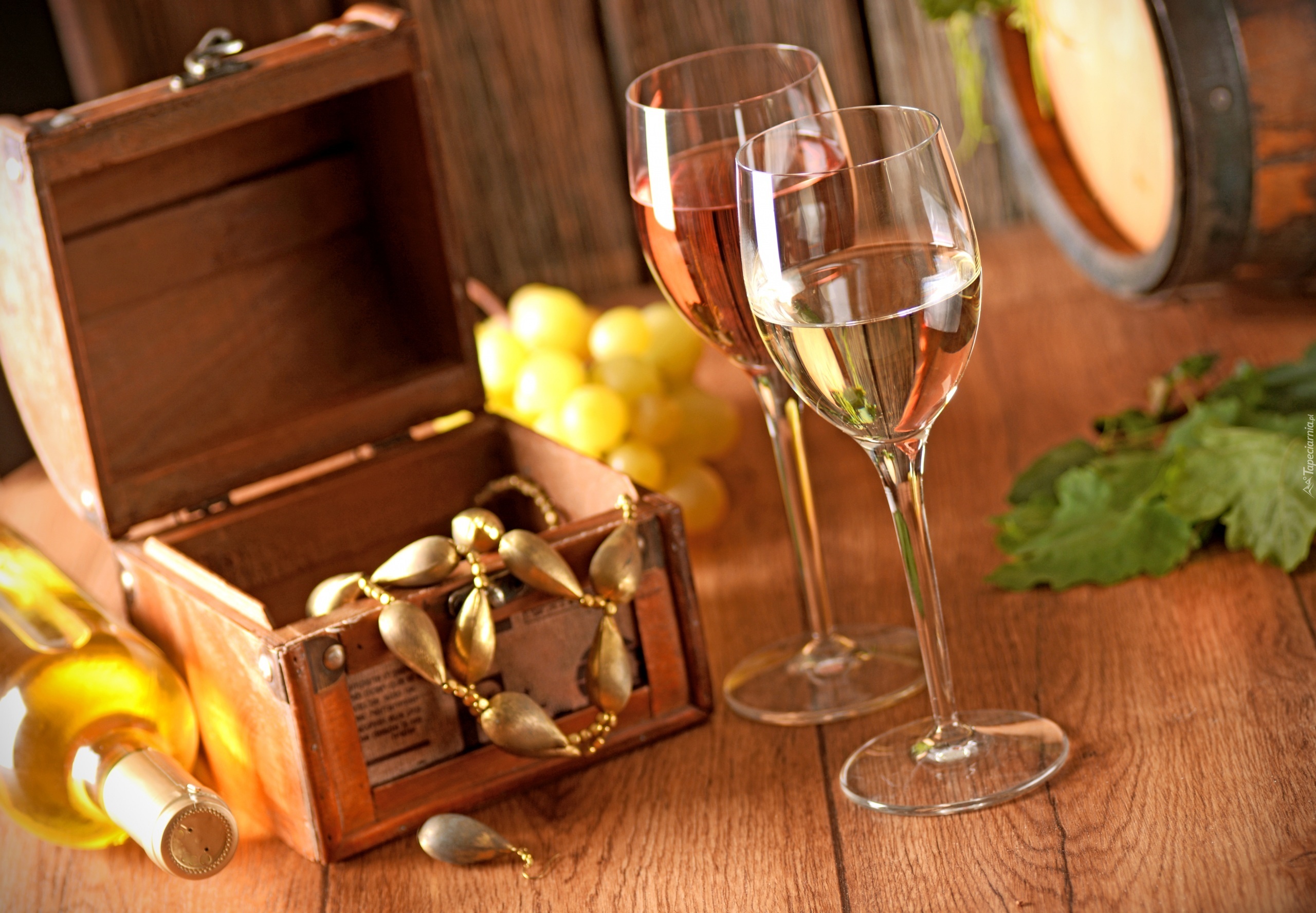 Edytor tapety: Butelka wina, Beczka, Kieliszki, Kuferek