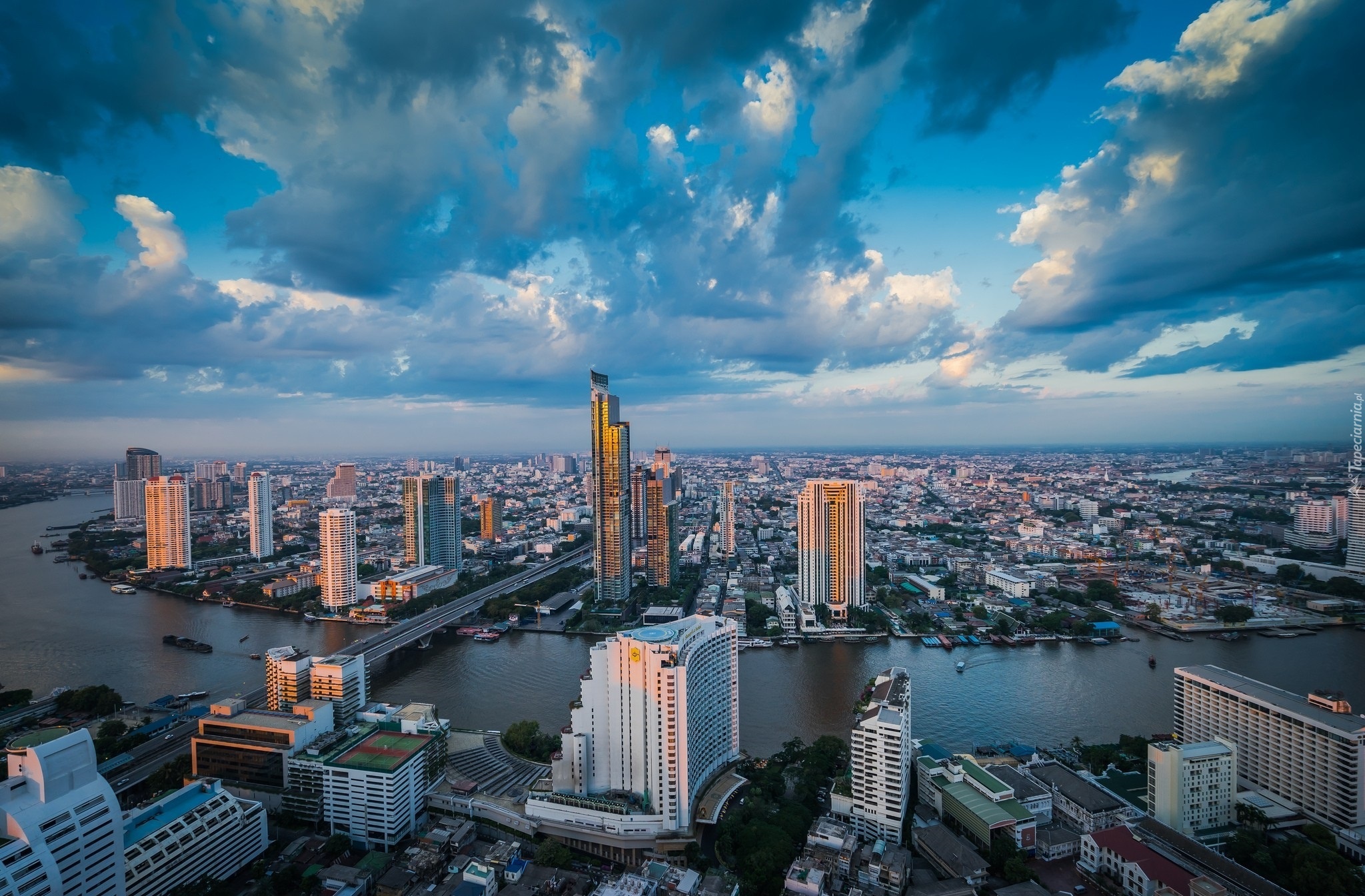 Edytor tapety: Miasto, Drapacze, Chmur, Rzeka, Chmury