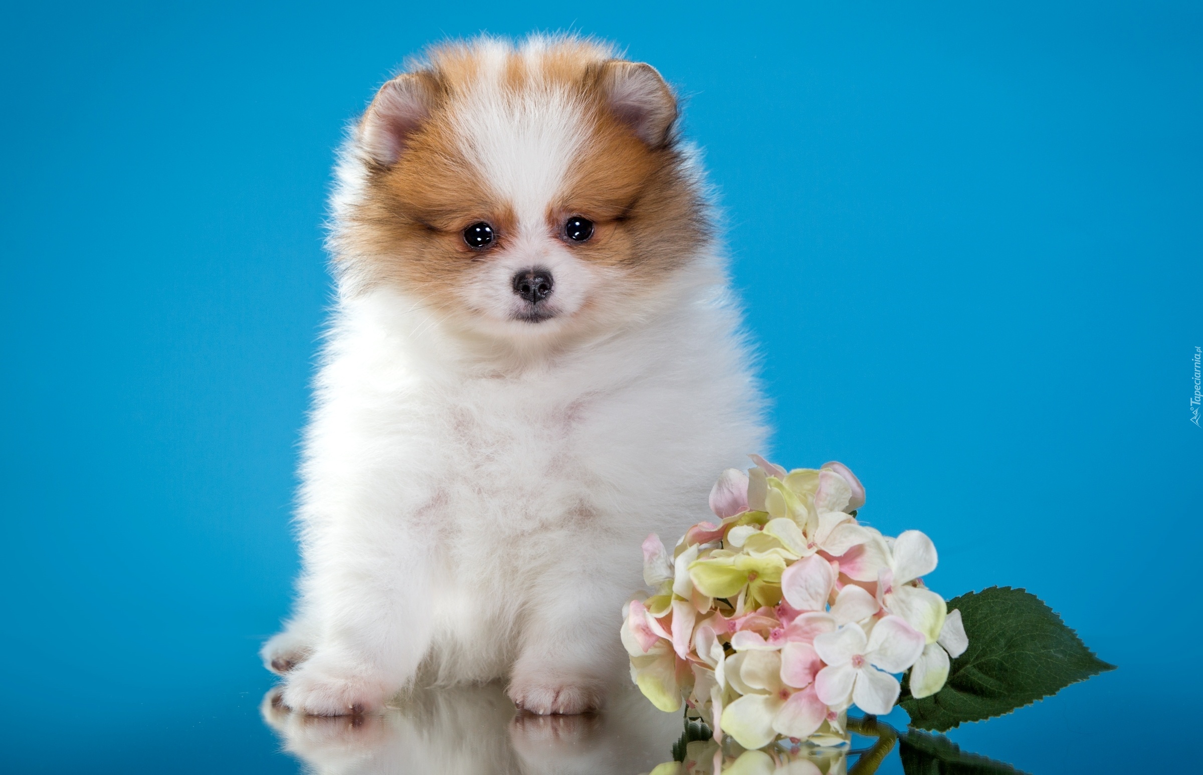 Edytor tapety: Pies, Szczeniak, Szpic, Kwiaty