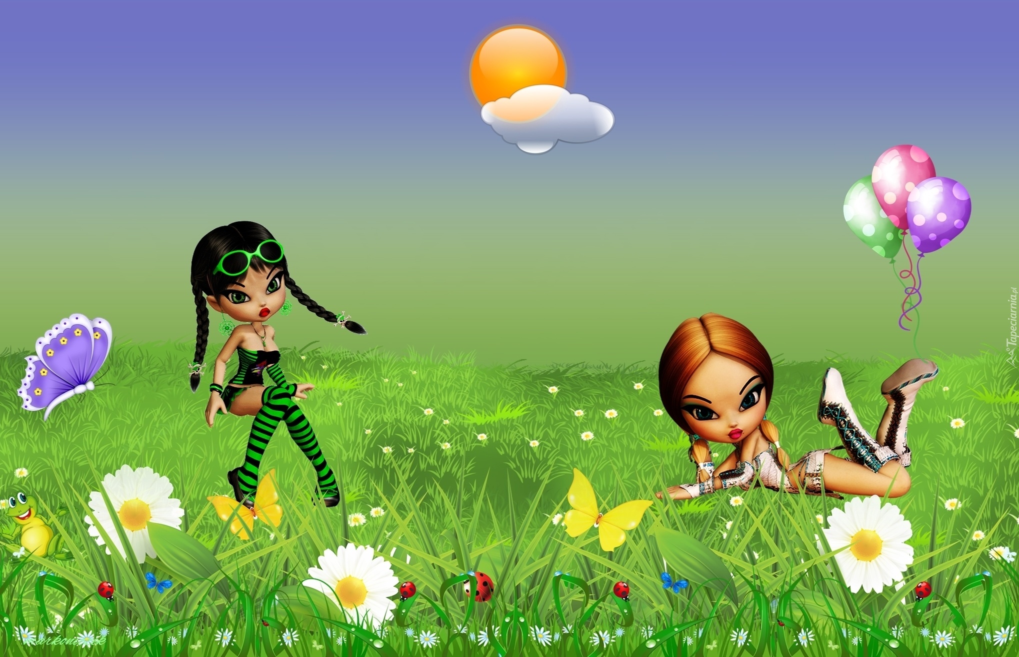 Edytor tapety: Grafika, Łąka, Kwiaty, Motylki