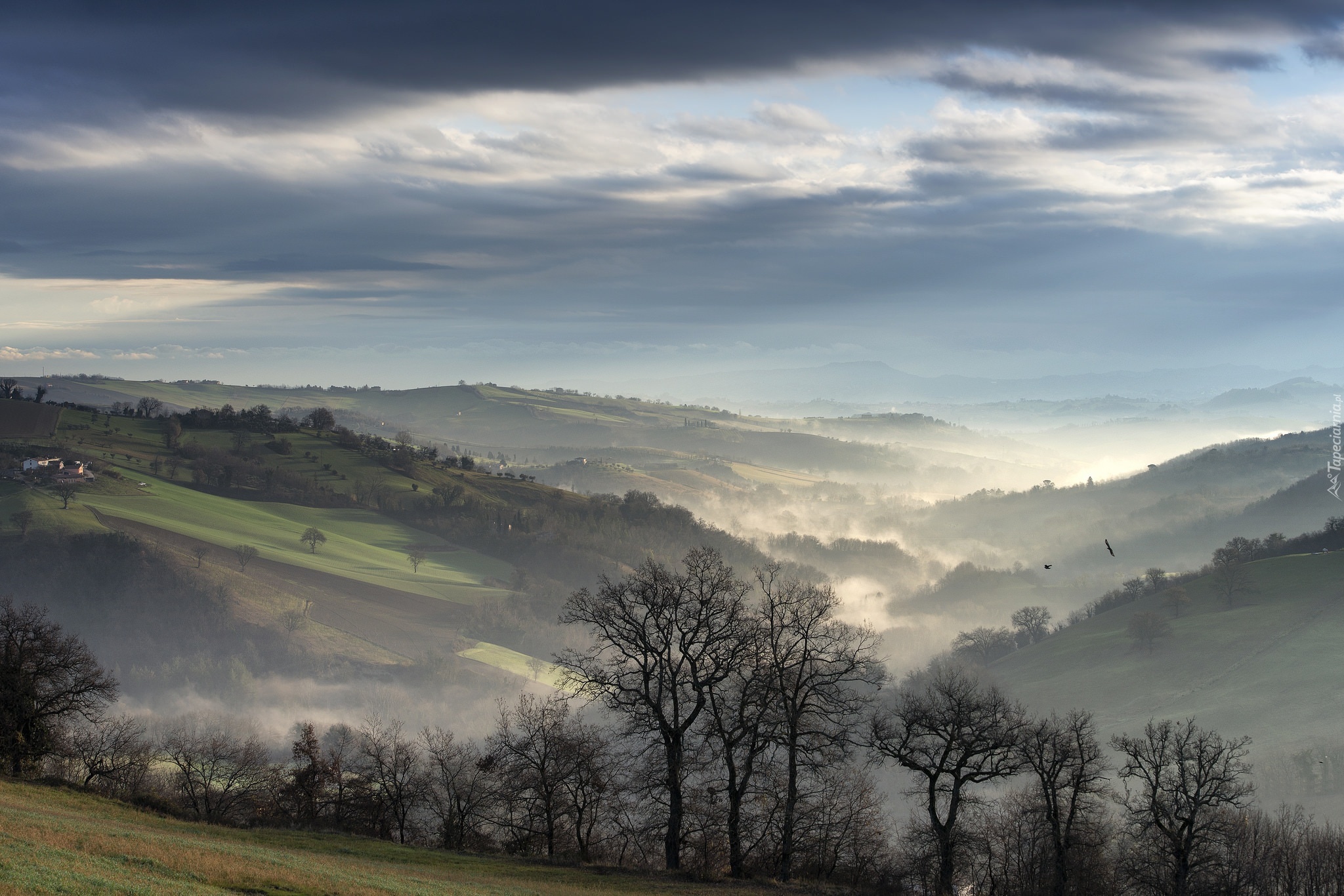 Edytor tapety: Mgła, Rano, Drzewa, Panorama