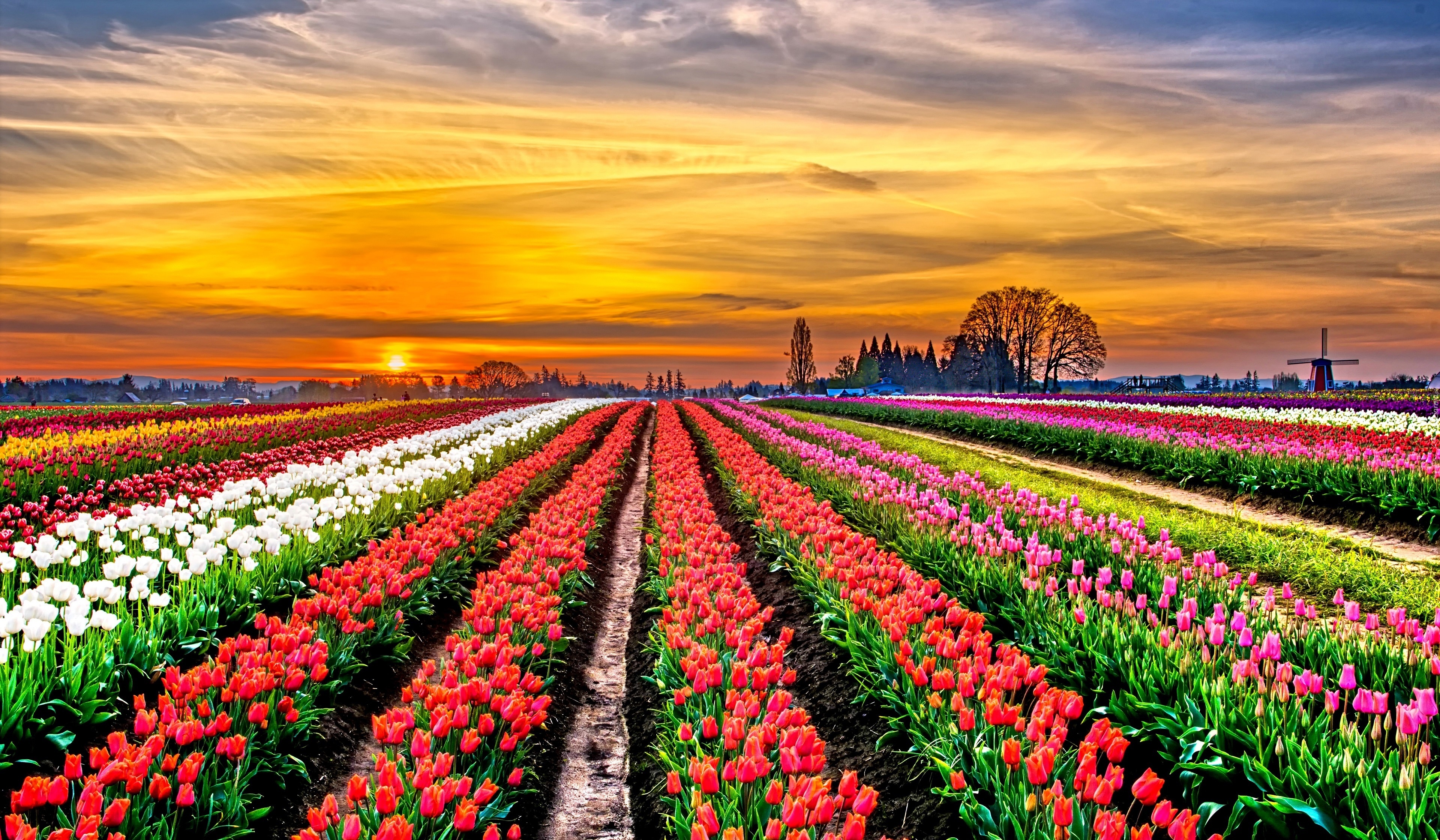 Edytor tapety: Plantacja, Tulipanów, Zachód, Słońca