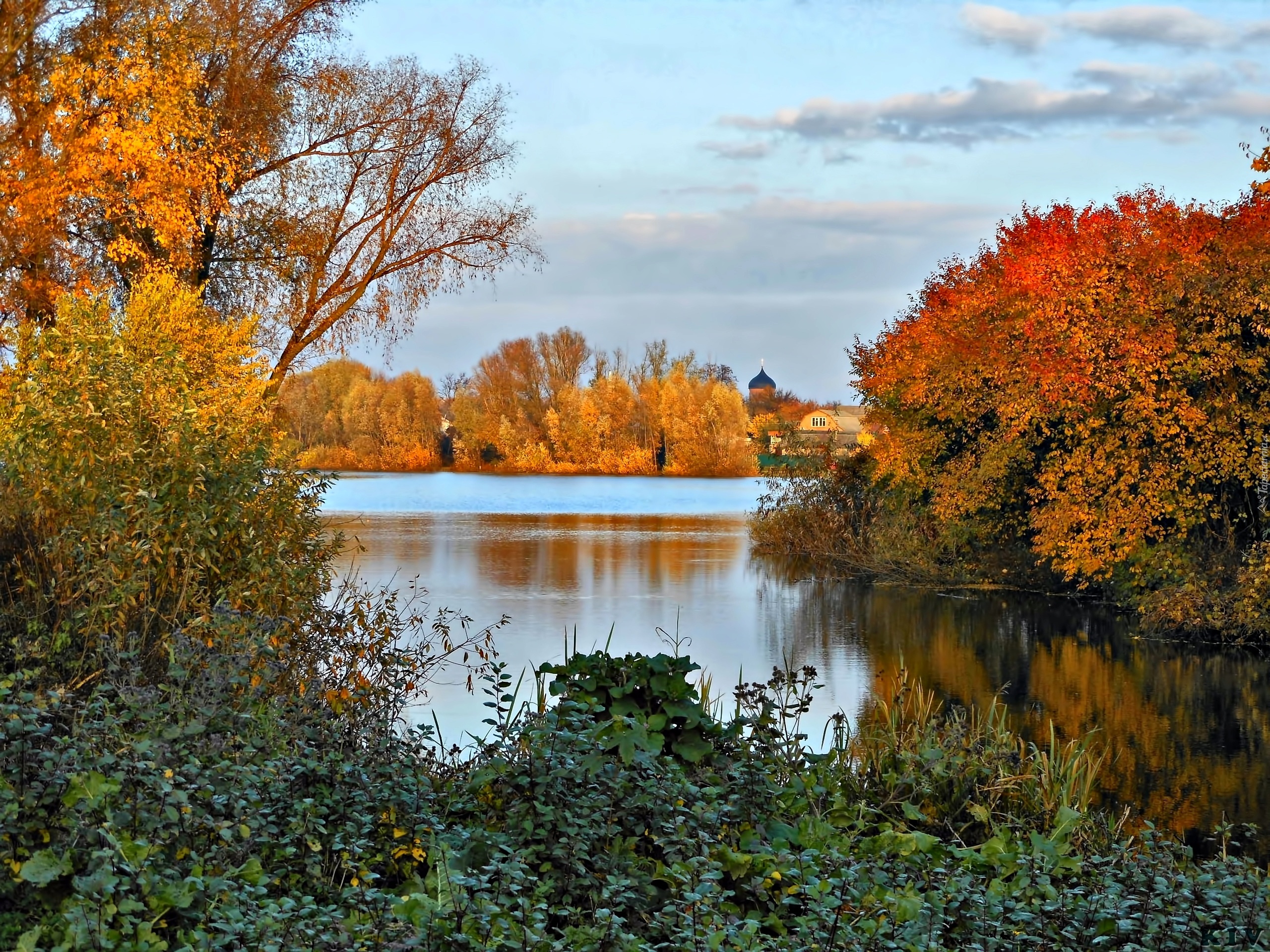 Edytor tapety: Dom, Las, Rzeka, Jesień