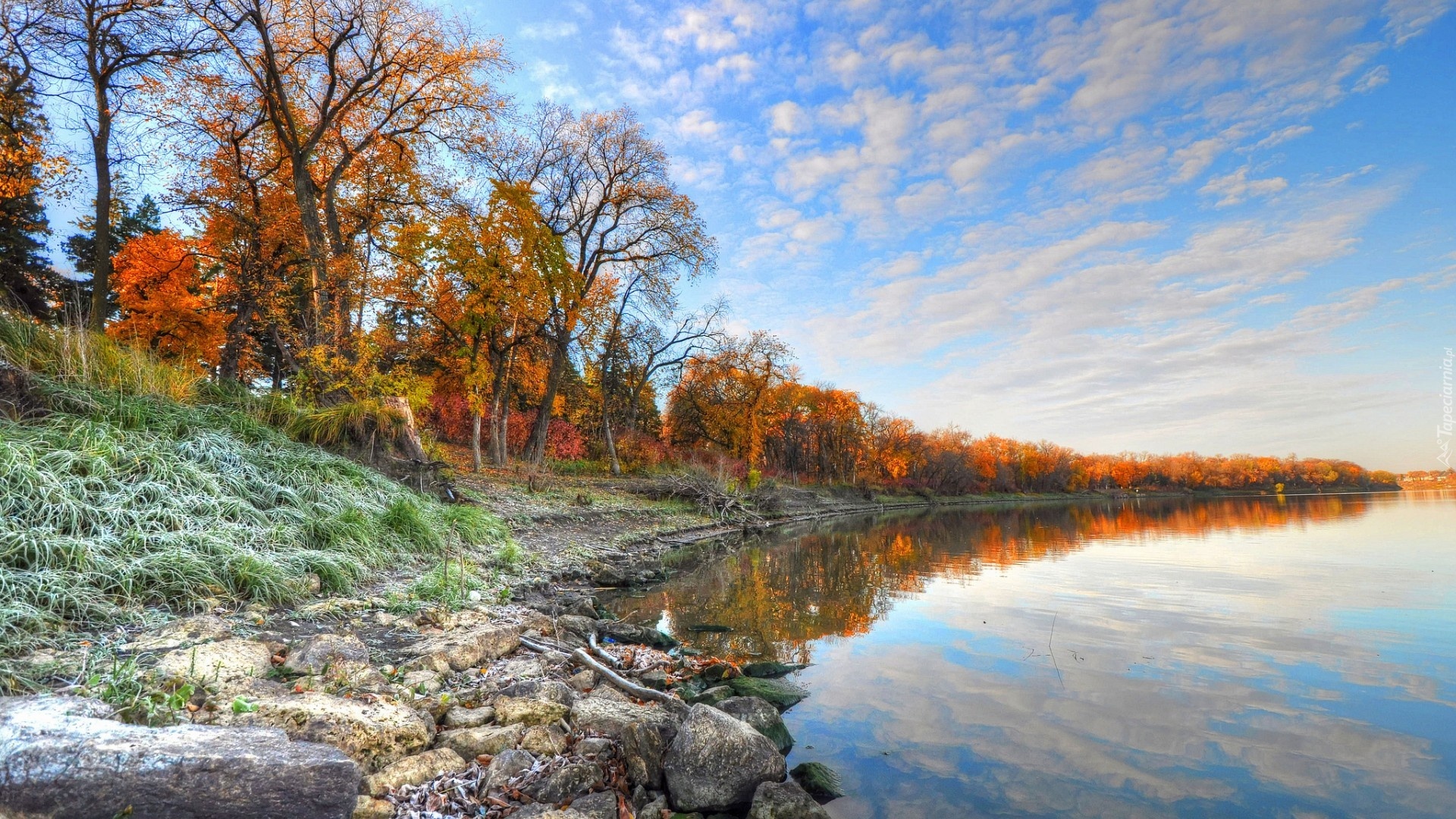 Edytor tapety: Jezioro, Kamienie, Drzewa