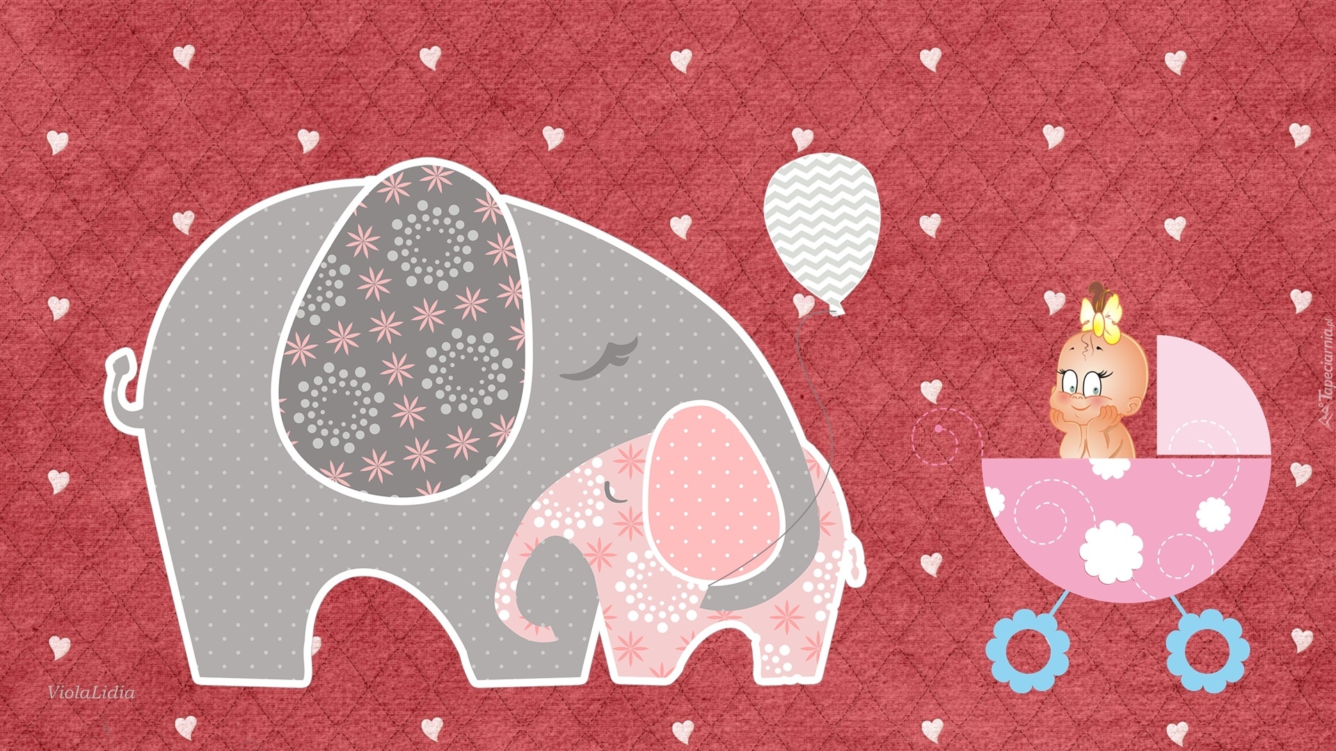 Edytor tapety: Grafika, Dziecko, Wózek, Słonie, Zabawka