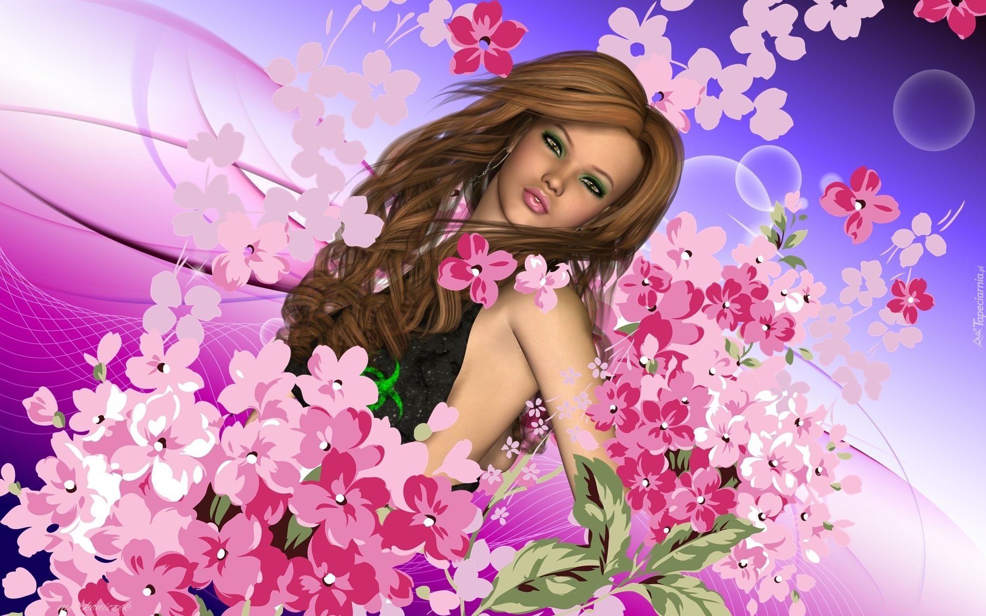Edytor tapety: Grafika, Dziewczyna, Kwiaty