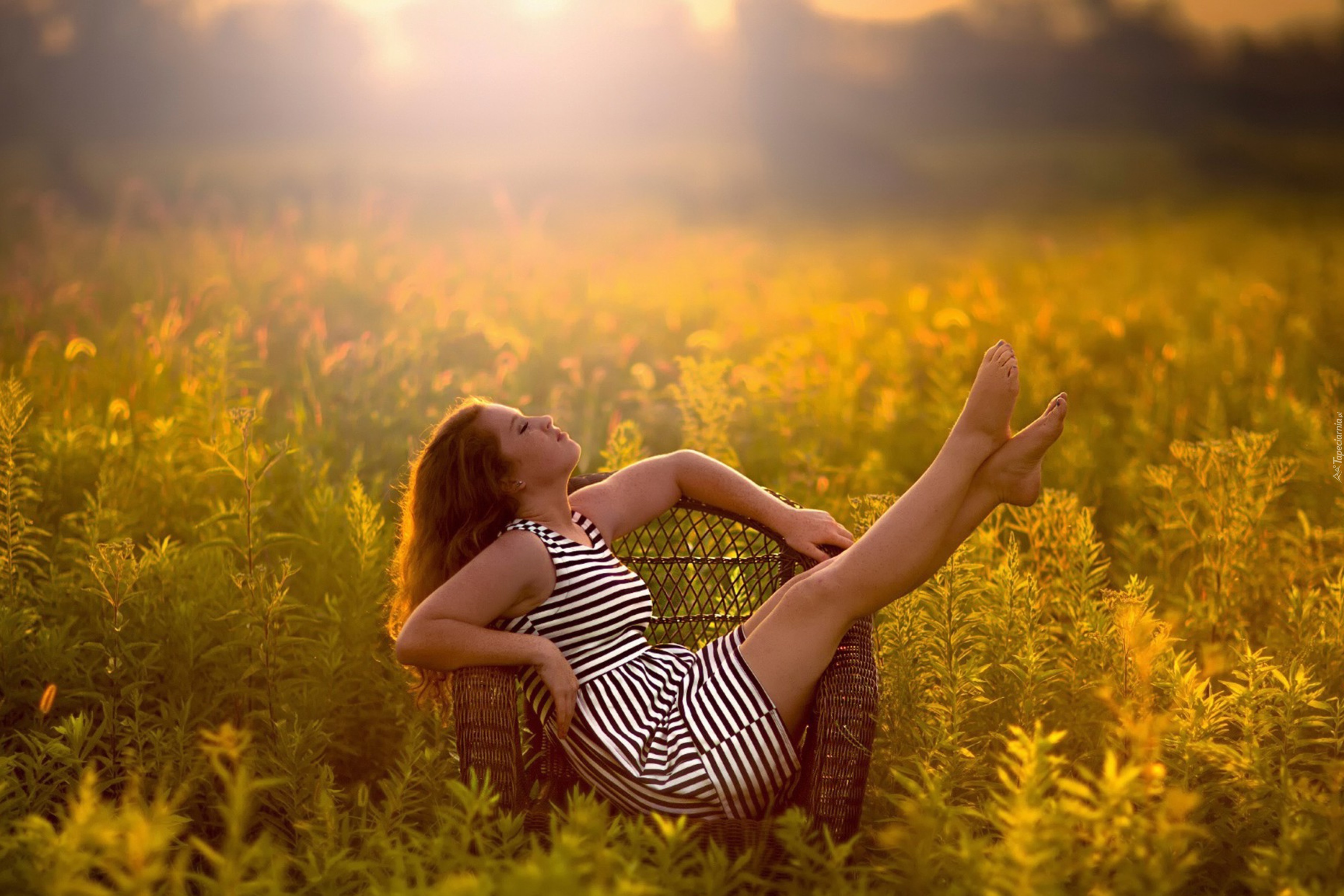 Edytor tapety: Kobieta, Fotel, Łąka