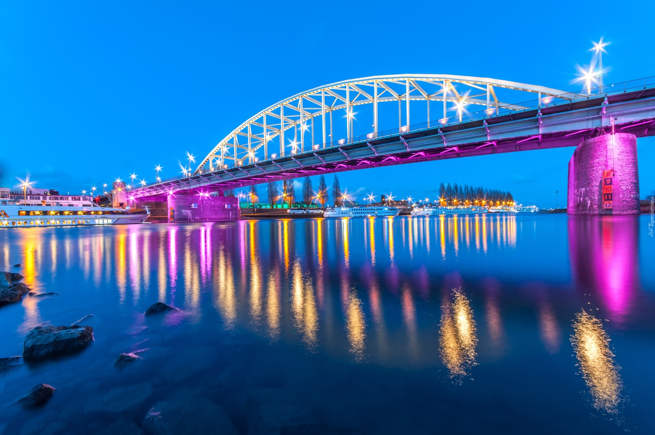 Edytor tapety: Rzeka, Most, Światła, Noc