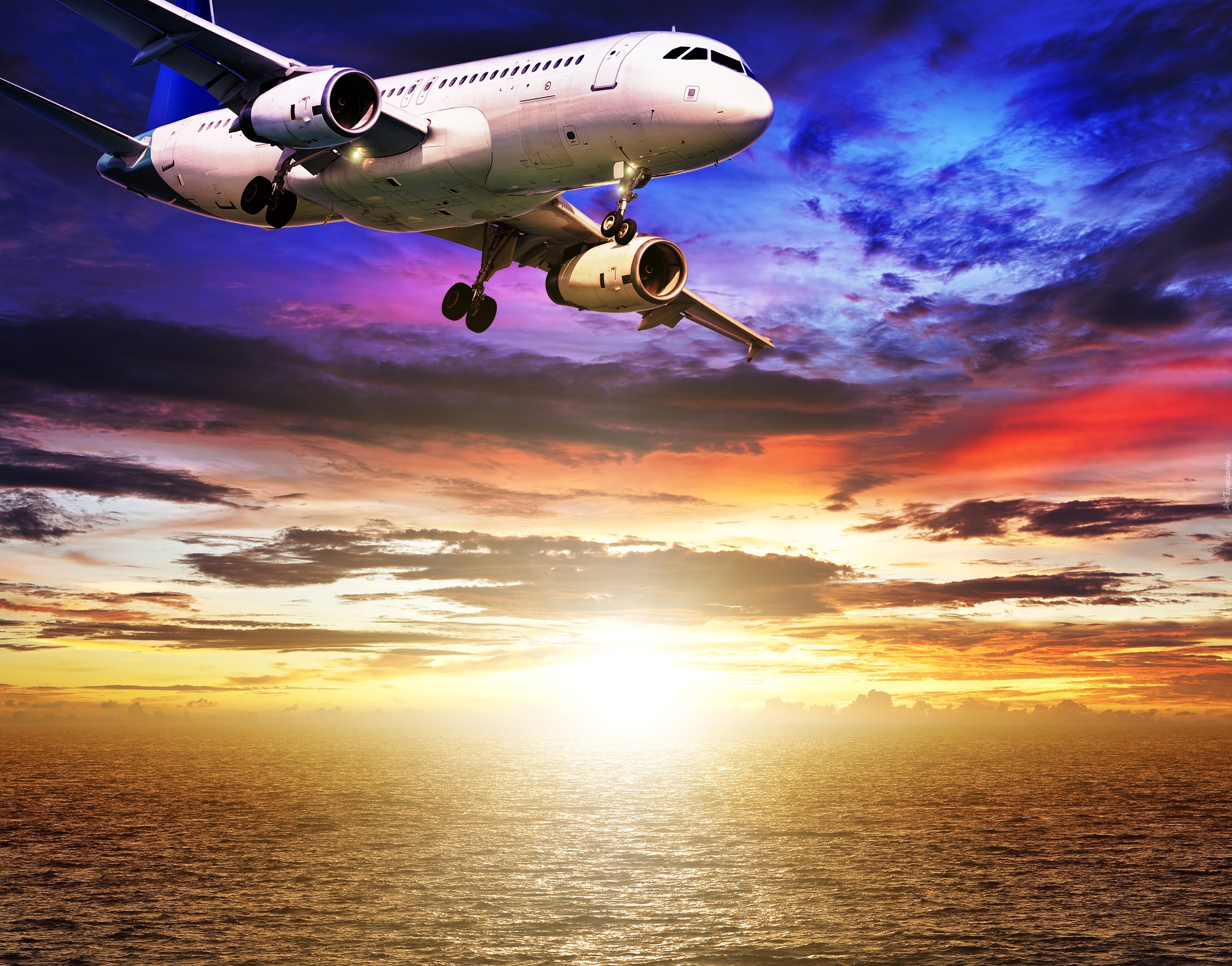 Edytor tapety: Wschód, Słońce, Samolot, Morze, Kolorowe, Niebo