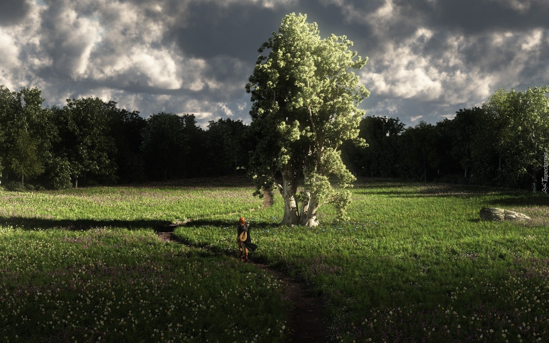 Edytor tapety: Łąka, Drzewa, Dziewczyna