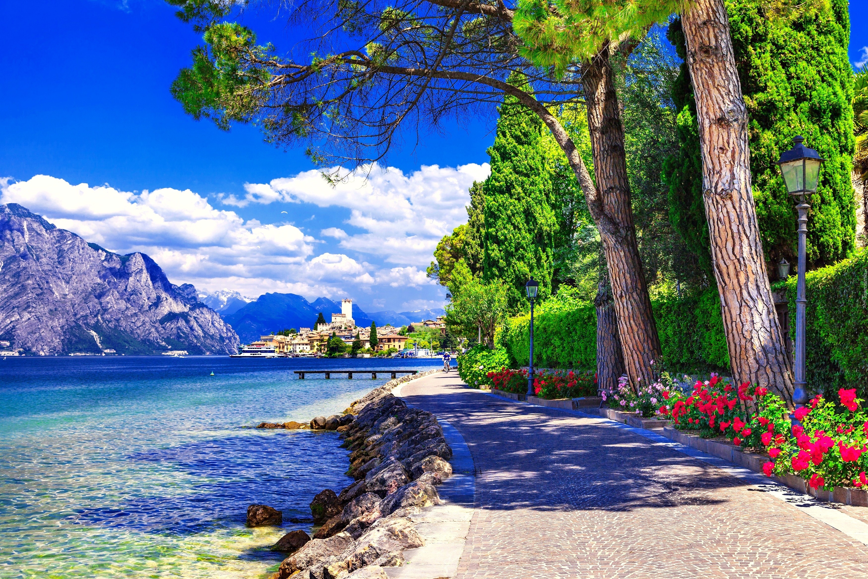 Edytor tapety: Jezioro, Garda, Włochy, Park, Bulwar