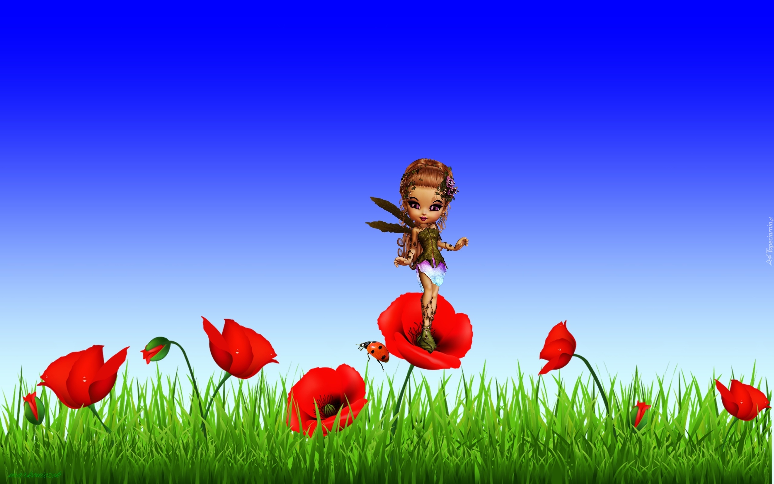 Edytor tapety: Grafika, Kwiaty, Maki, Biedronka, Motylek