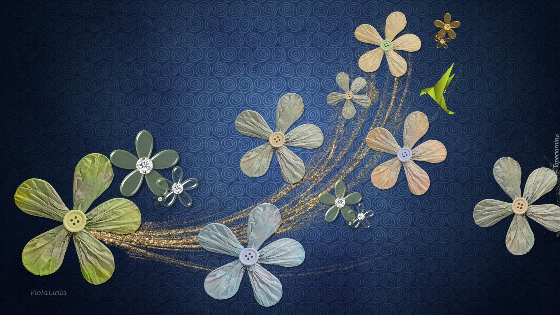Edytor tapety: Grafika, Ptak, Origami, Kwiaty