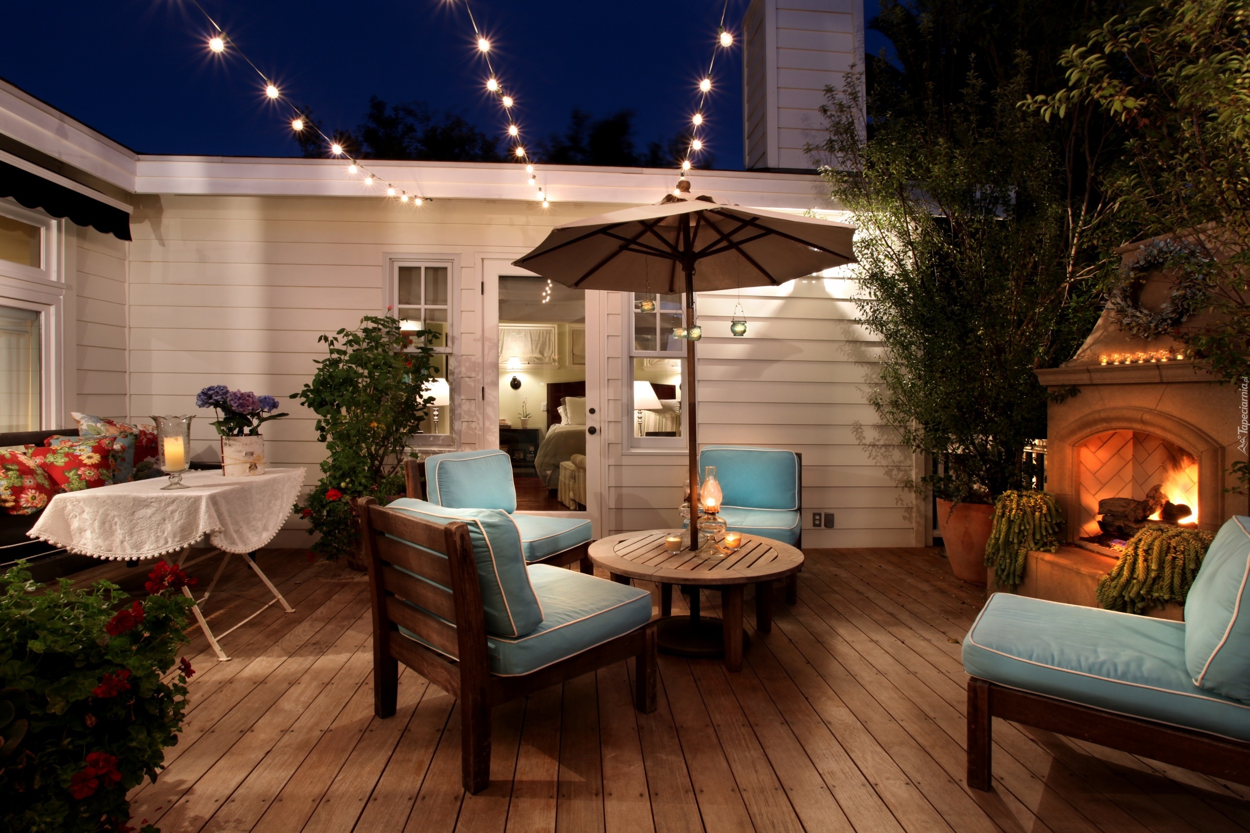Edytor tapety: Fotele, Kominek, Stół, Podłoga, Taras